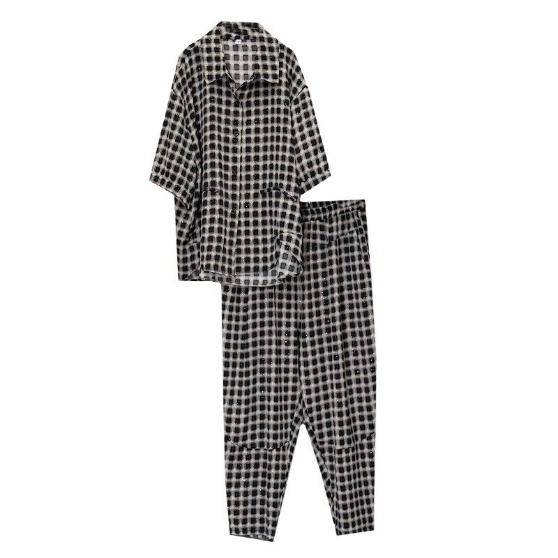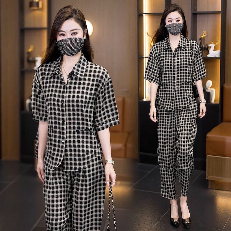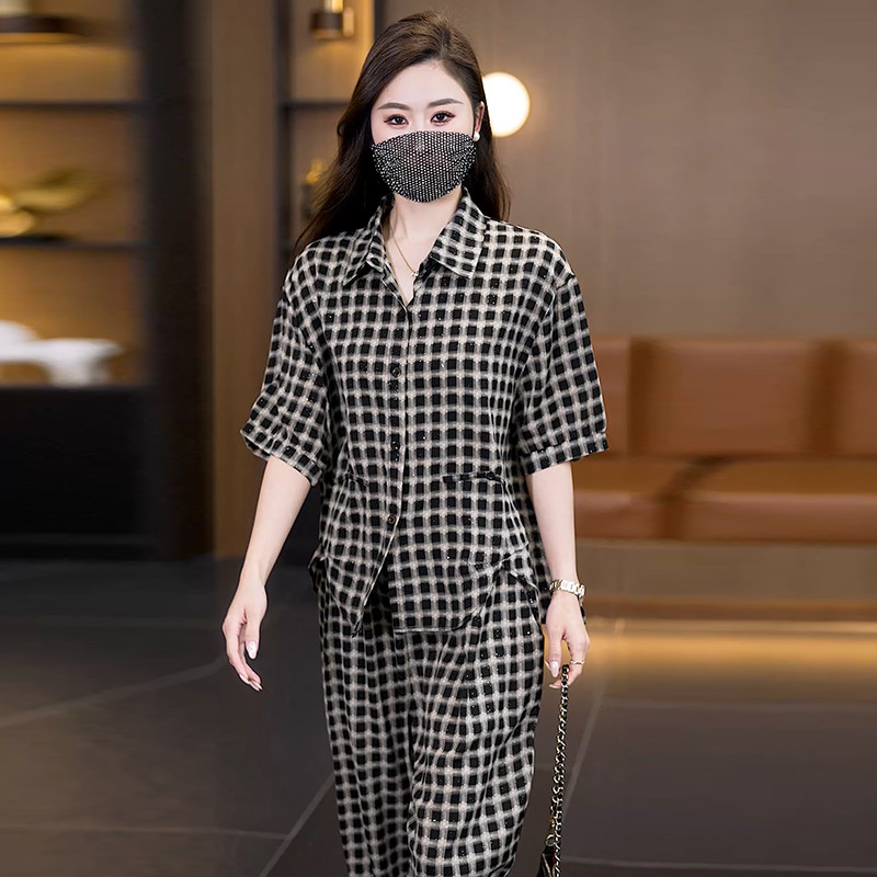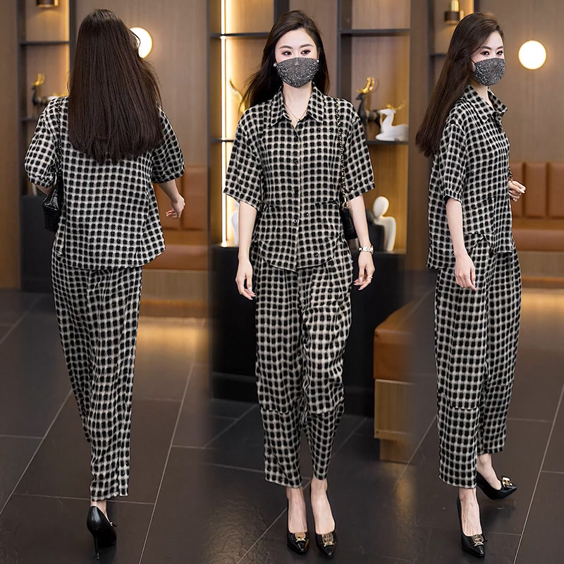套装 女2026夏装 新款 大码 裤 时尚 胖mm遮肚显瘦洋短袖 子两件套 女装