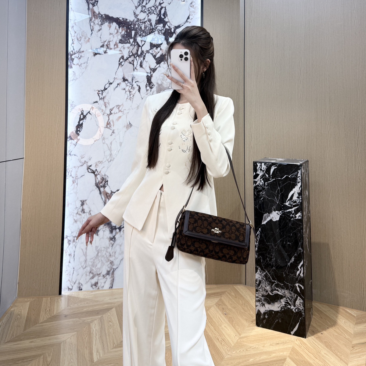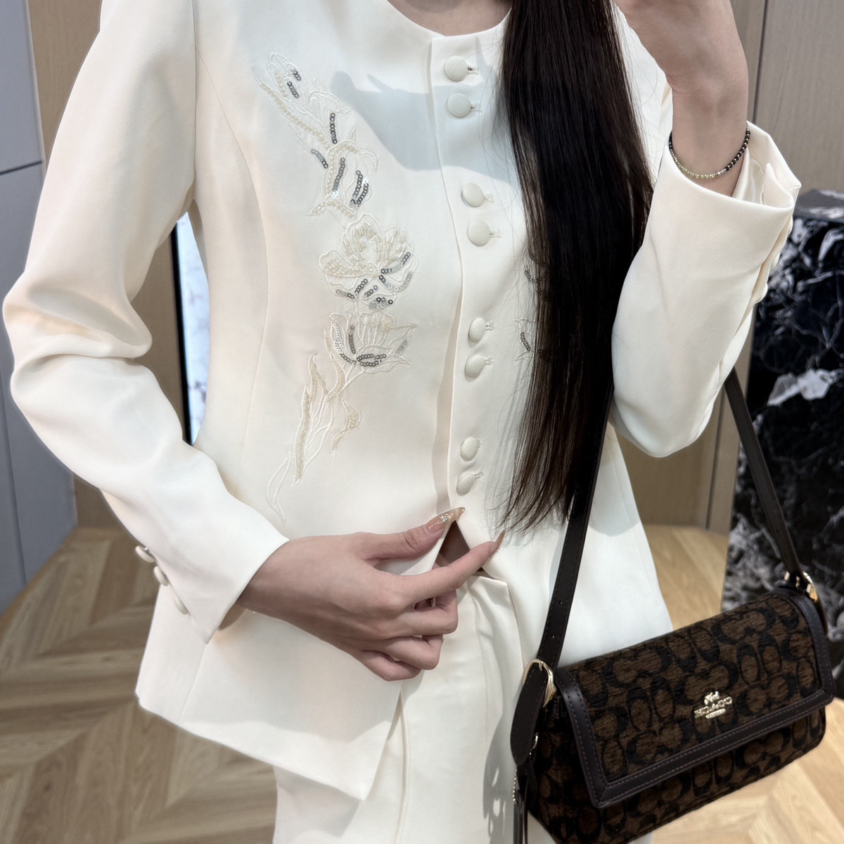 两件套套装 高腰阔腿裤 钉珠绣花外套 早春上新
