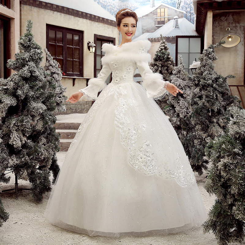 小个子冬天秋冬款 保暖加厚齐地长袖 新娘结婚冬季 婚纱礼服2021新款