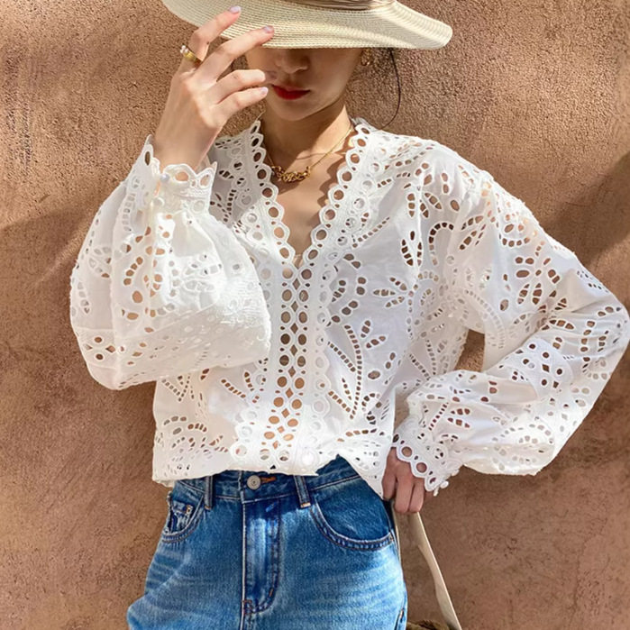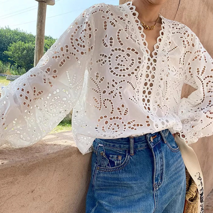 女长袖 Gary 白衬衫 欧美棉质刺绣法式 设计感衬衣女 宝藏2026春季