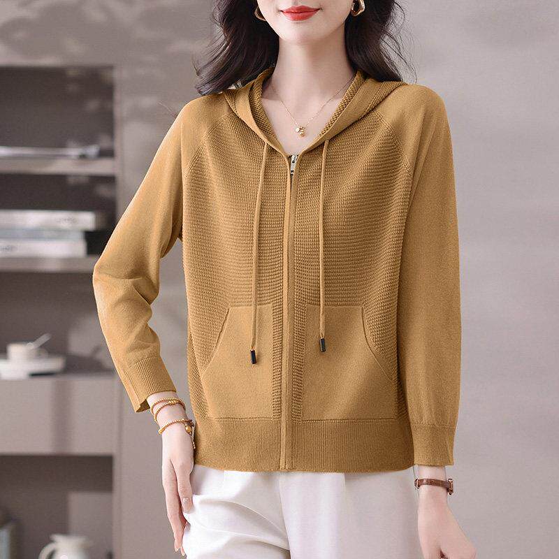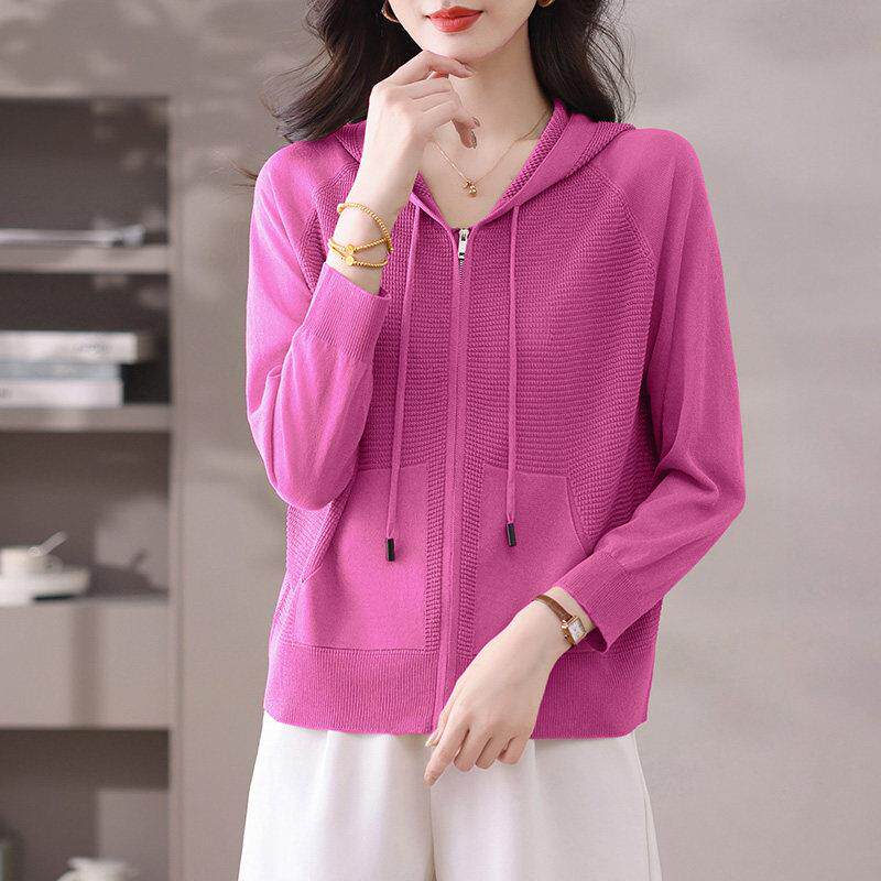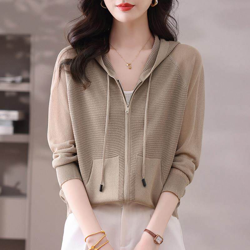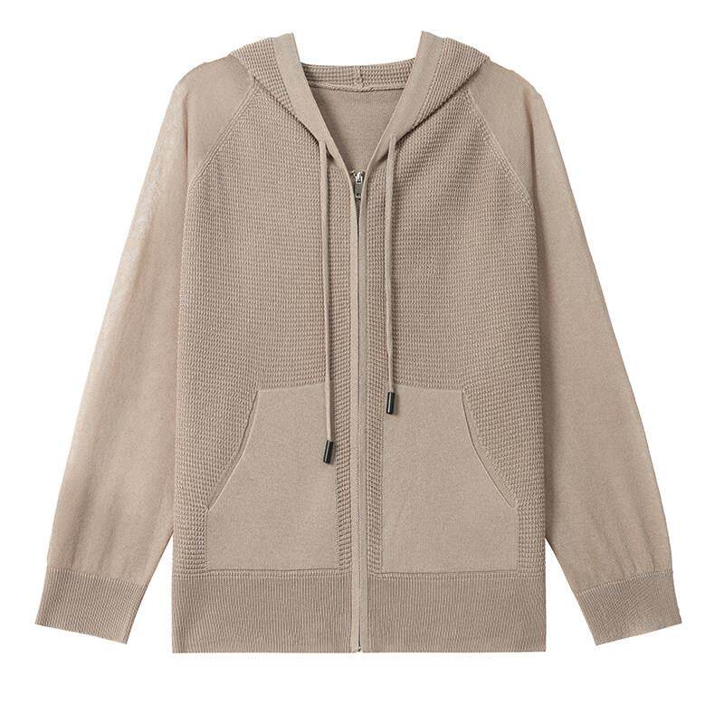 冰丝拉炼小外套 桑蚕丝外搭防晒衣披肩薄款 连帽卫衣针织开衫 女夏季
