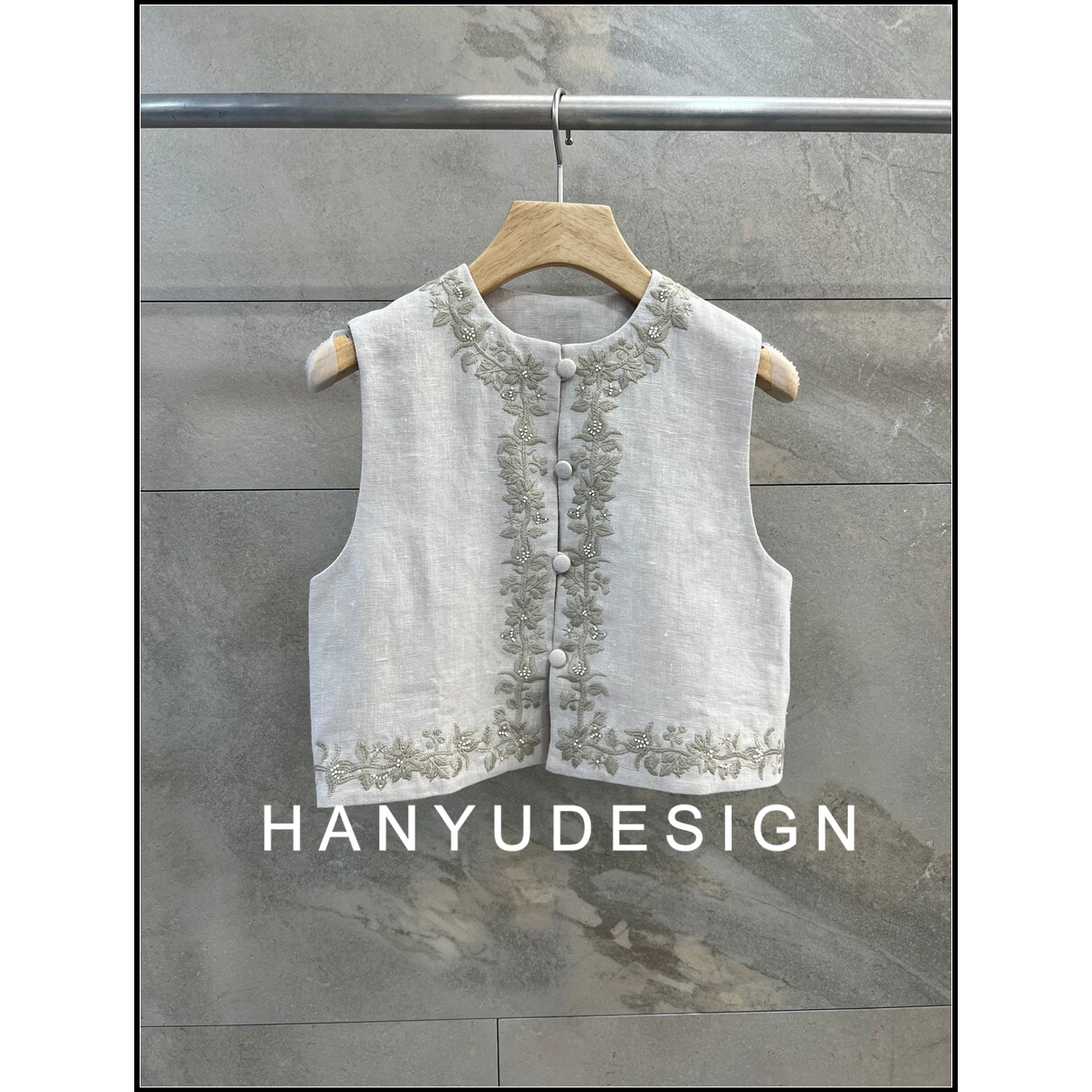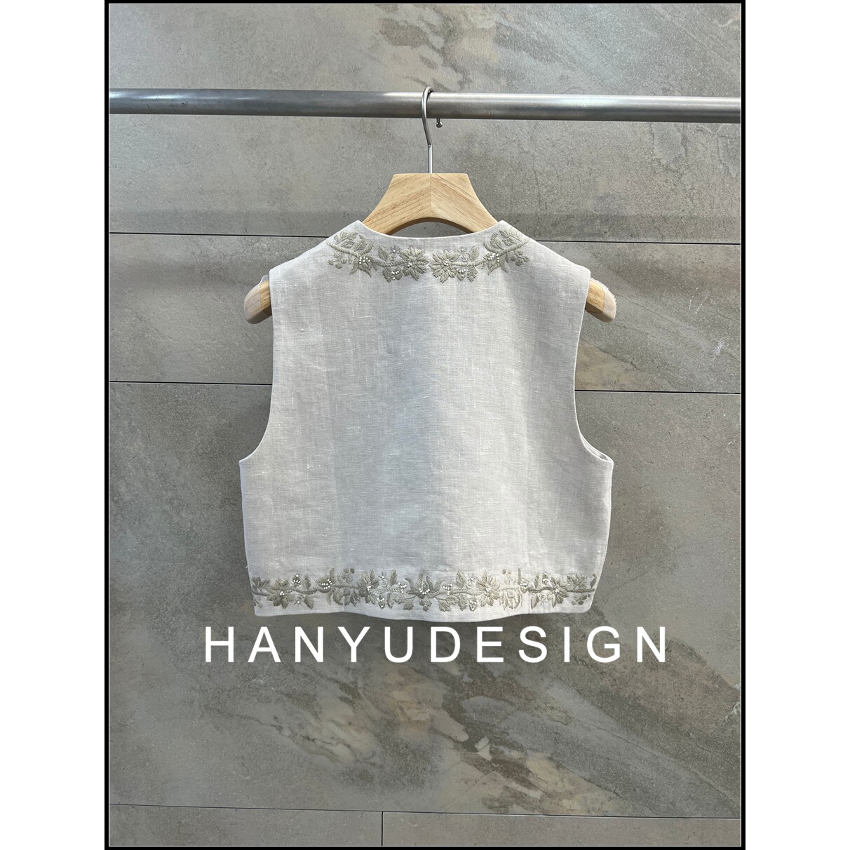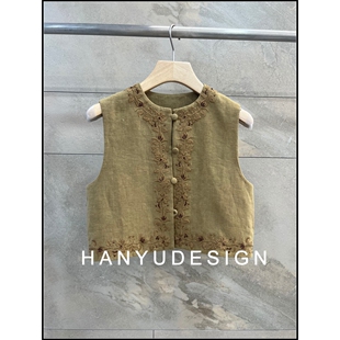 100%亚麻重工刺绣无袖 26早春新款 马甲女 韩钰DESIGN