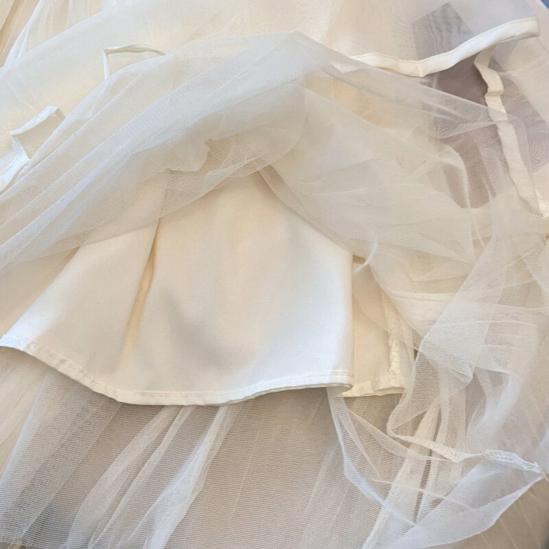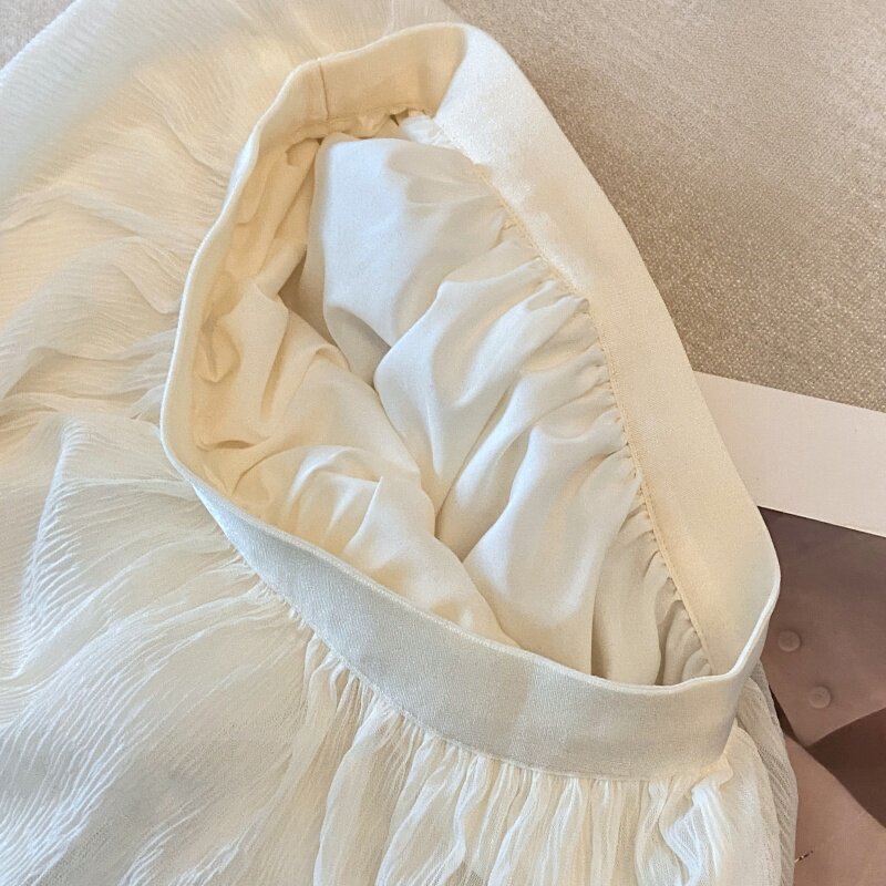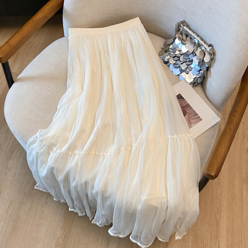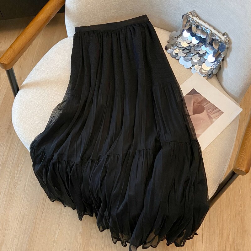 褶皱网纱拼接半身裙女2026春夏新款 裙女 高腰显瘦A字裙中长款
