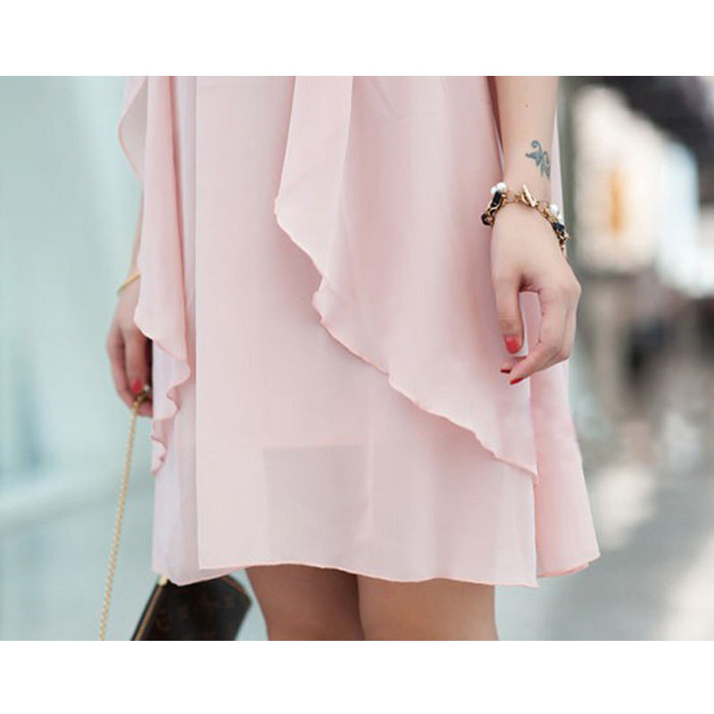 宽松荷叶边雪纺连衣裙 女装 遮小肚孕妇装 加大码 胖mm显瘦 夏装 短袖