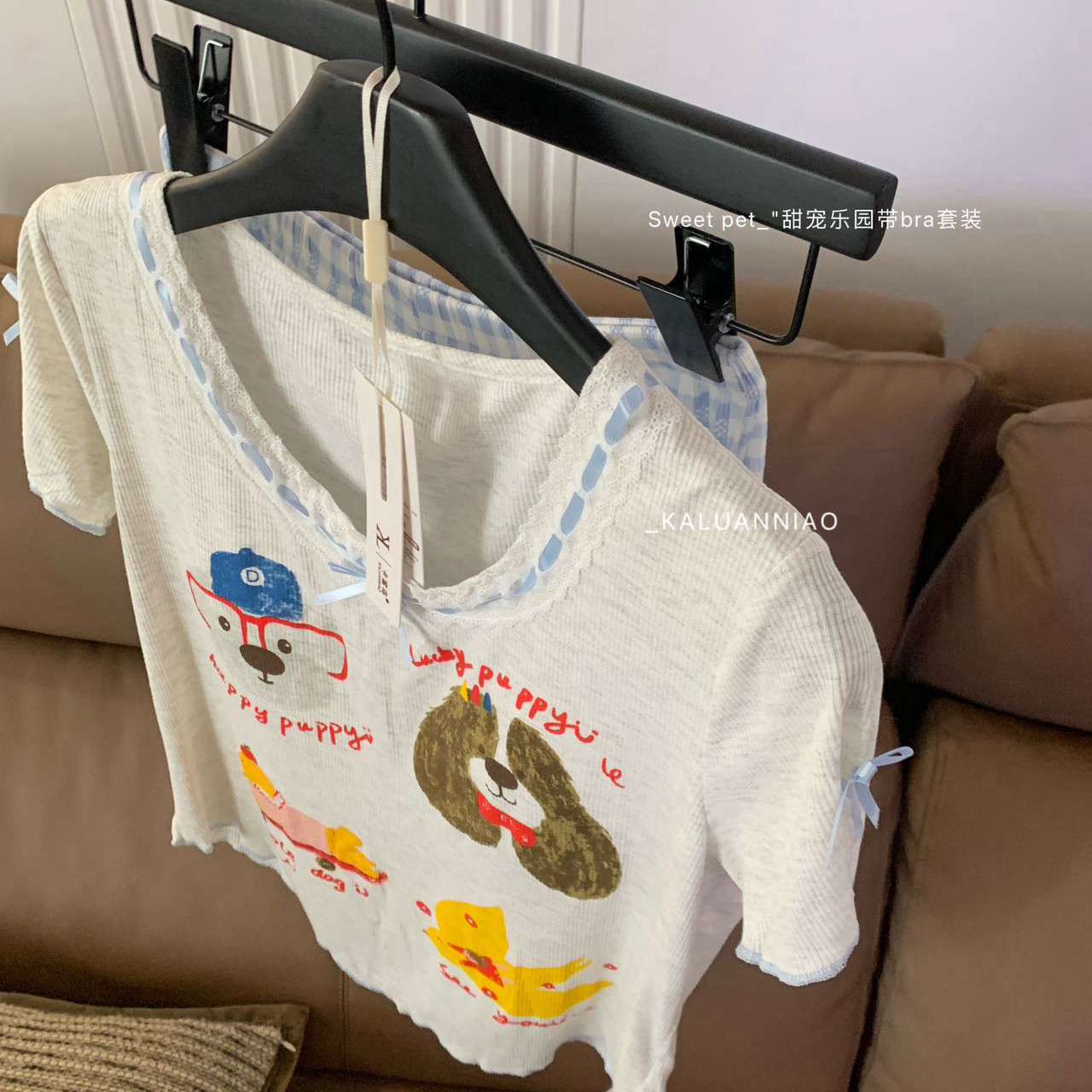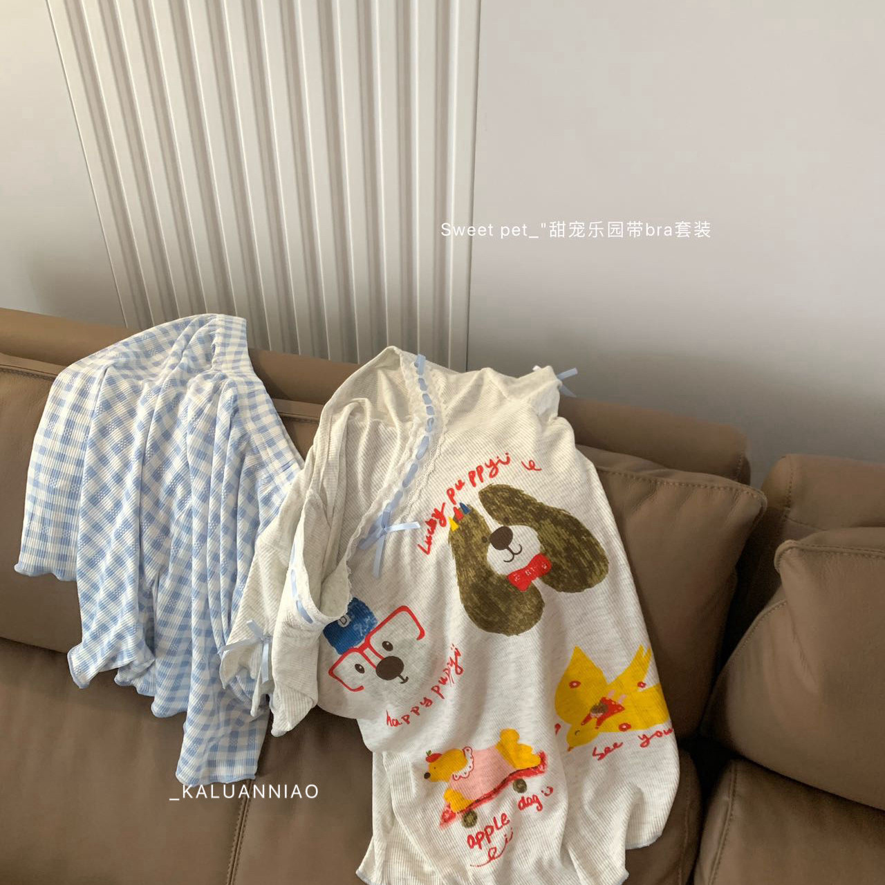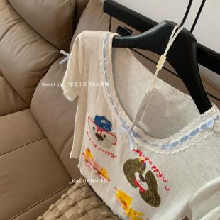 家居服两件套睡衣套装 格纹短裤 WGS6627 胸垫软糯亲肤T恤 XIA夏夏