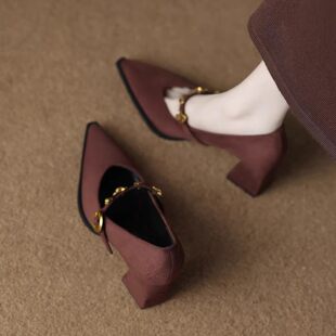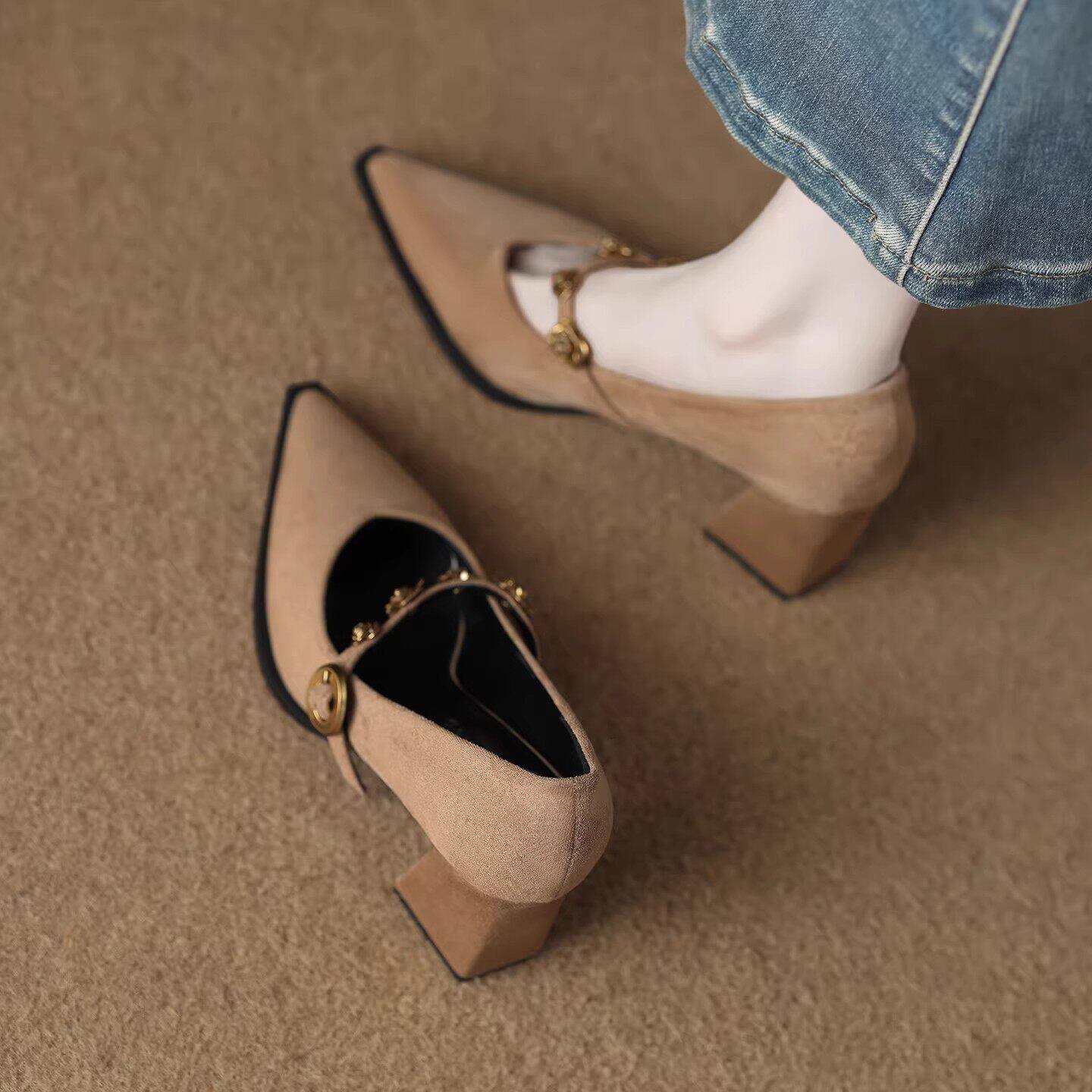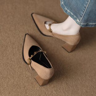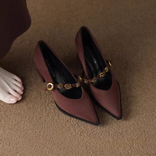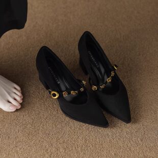 春秋玛丽珍粗跟单鞋 女2026新款 尖头气质高级不累脚高跟鞋 轻奢法式