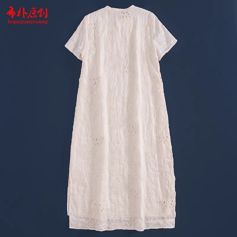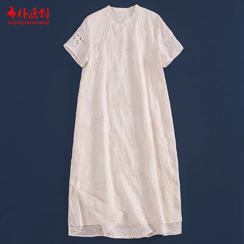 显瘦连衣裙 文艺100支苎麻镂空刺绣面料新中式 布朴家作2026夏季 款
