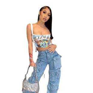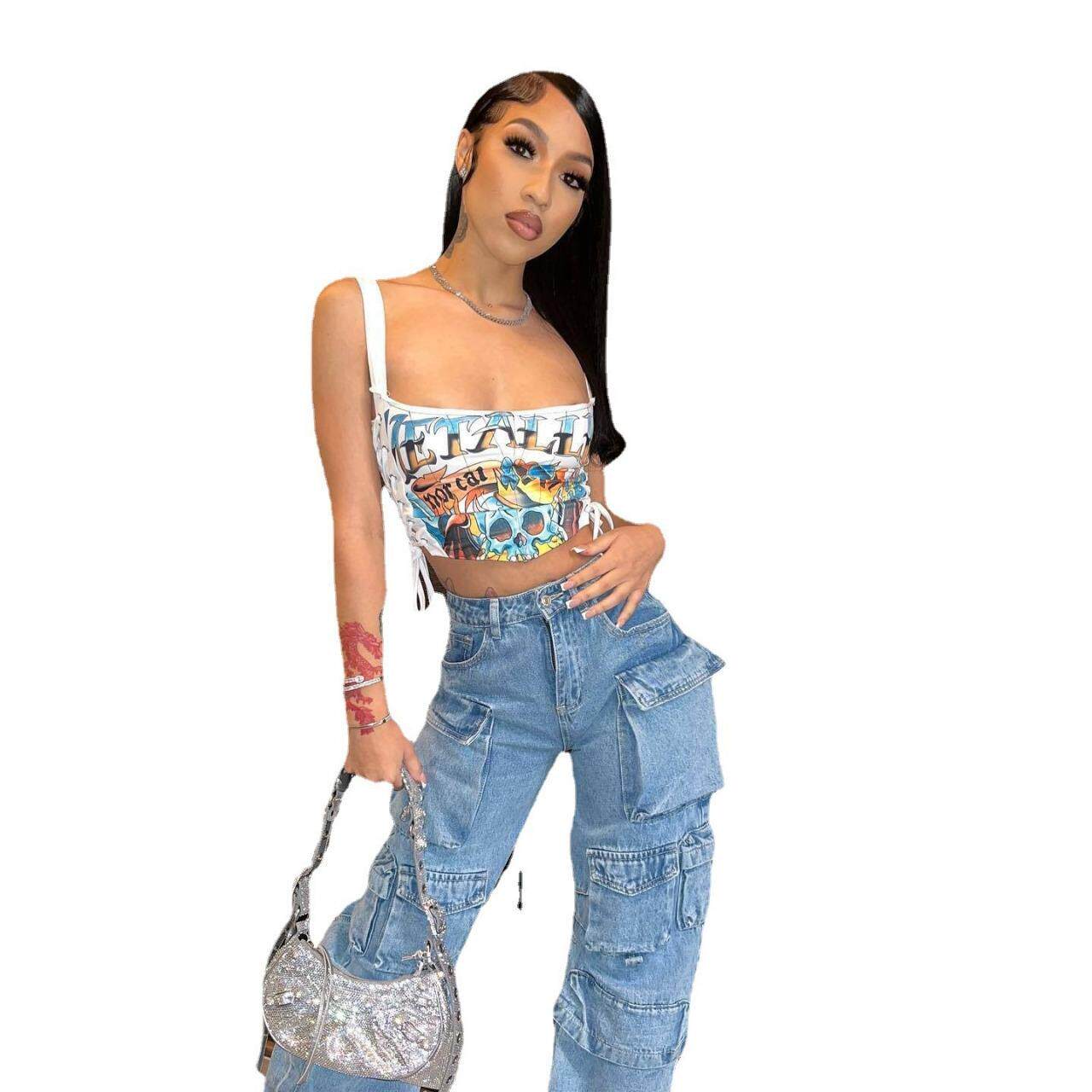 vest with and elastic straps printed shoulder Women thin
