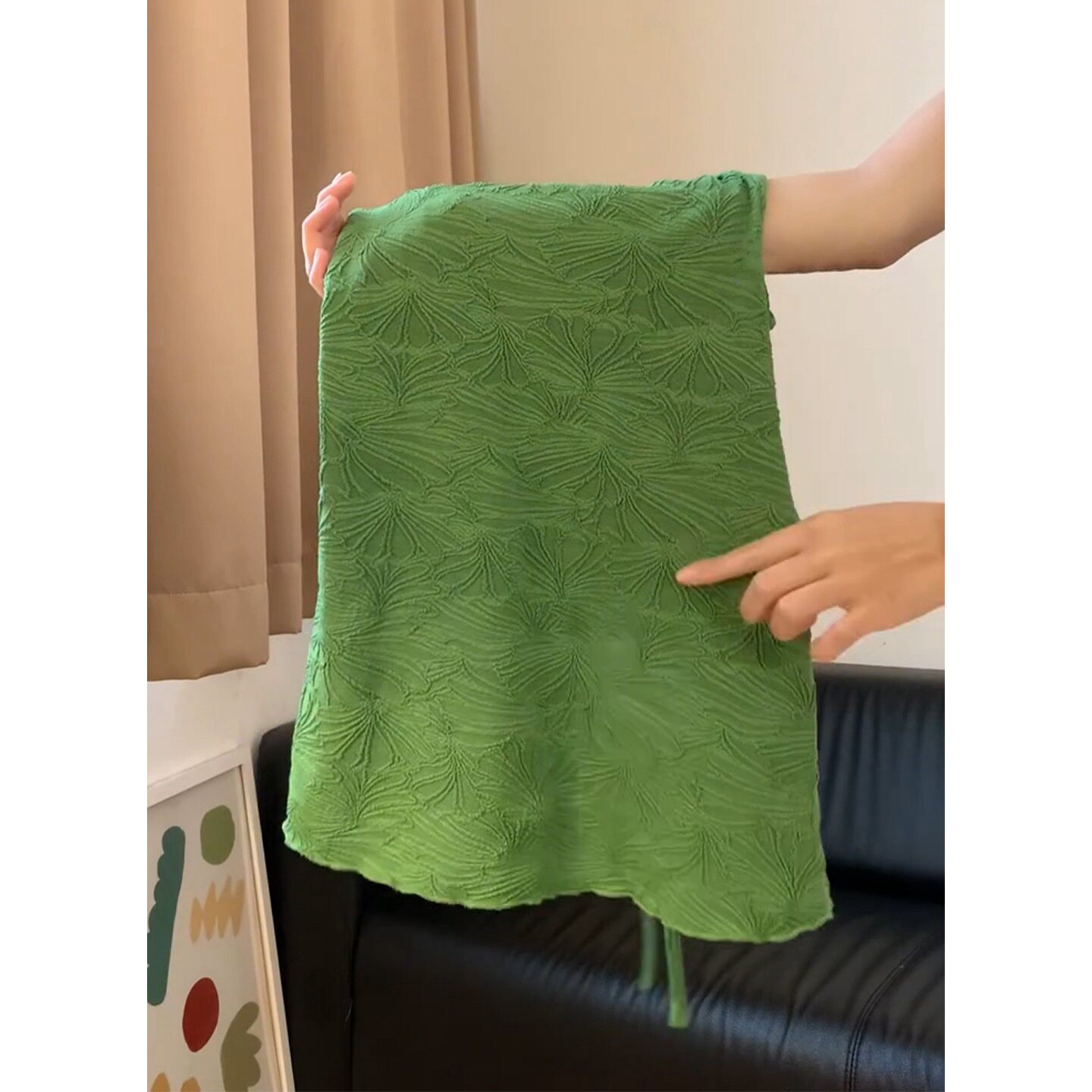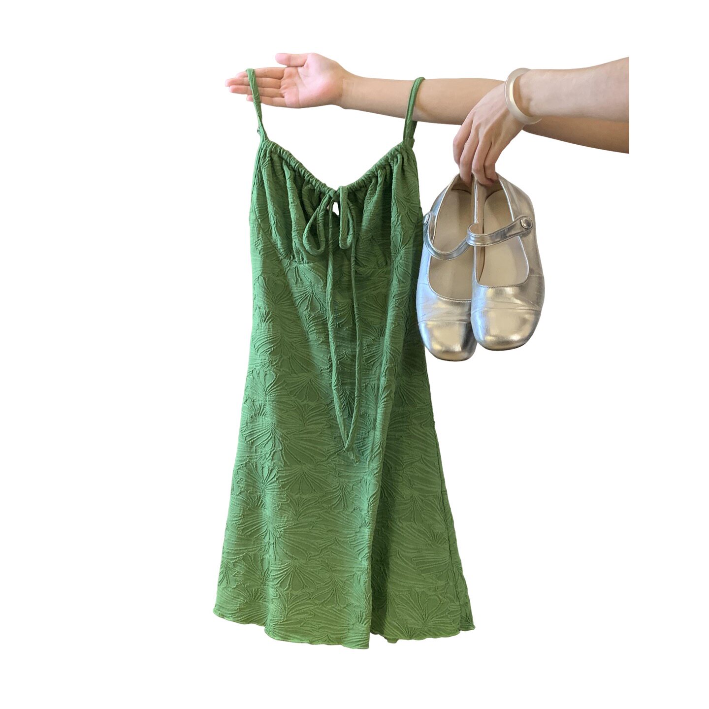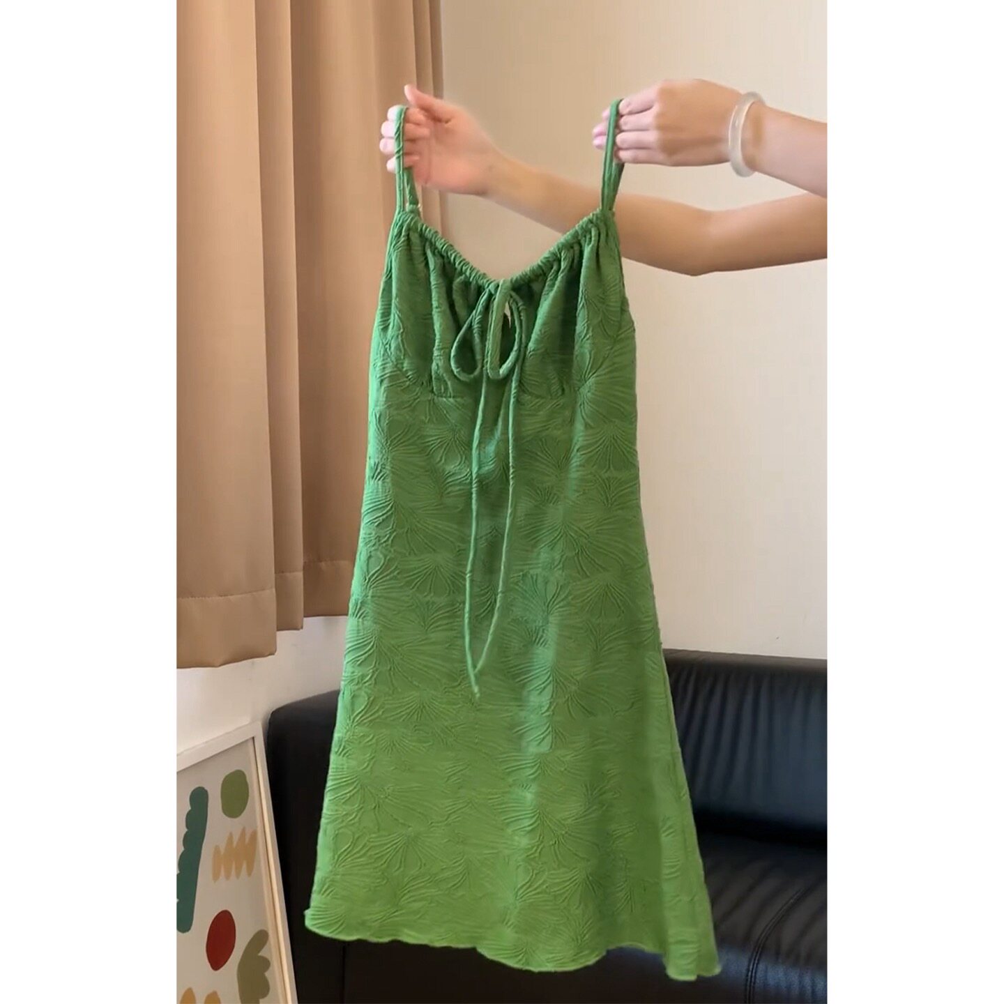 显瘦抹胸海边度假连衣裙 新款 法式 复古肌理感绿色吊带短裙子女夏季