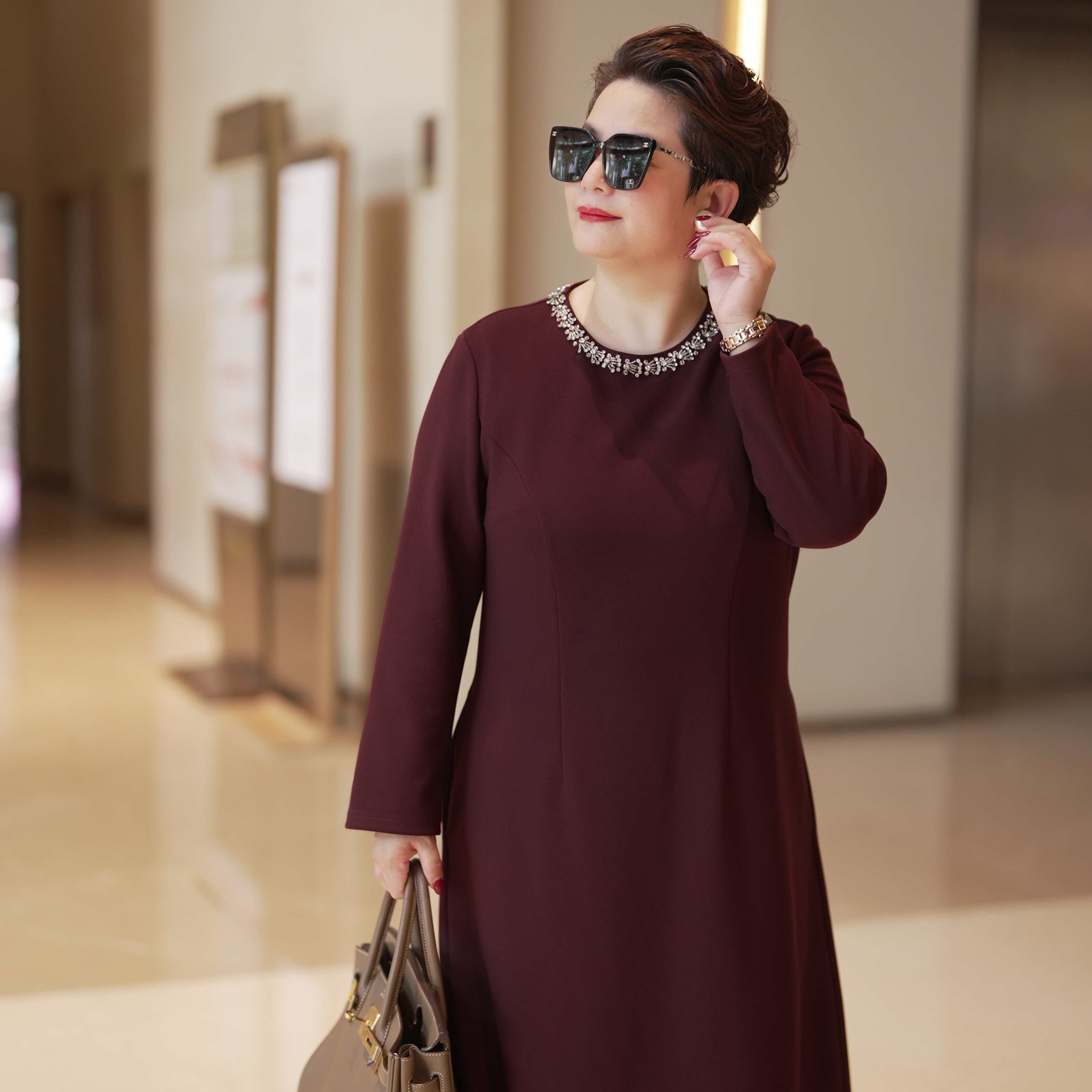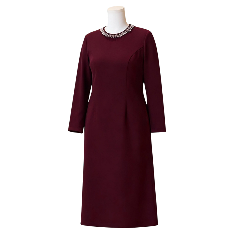 气质礼服收腰显瘦水钻领连衣裙0351 2026春秋新款 向红同学大码 女装