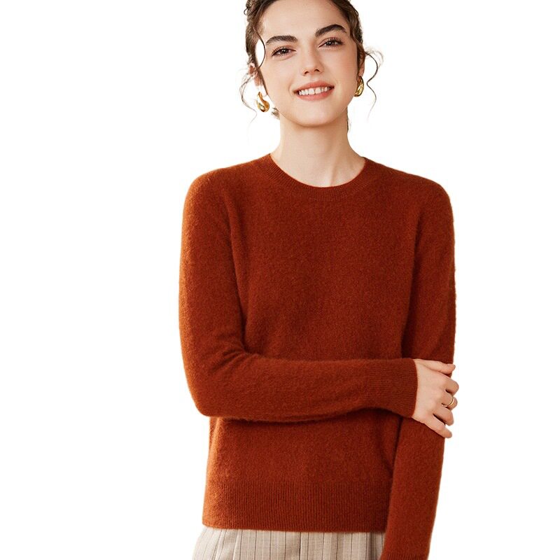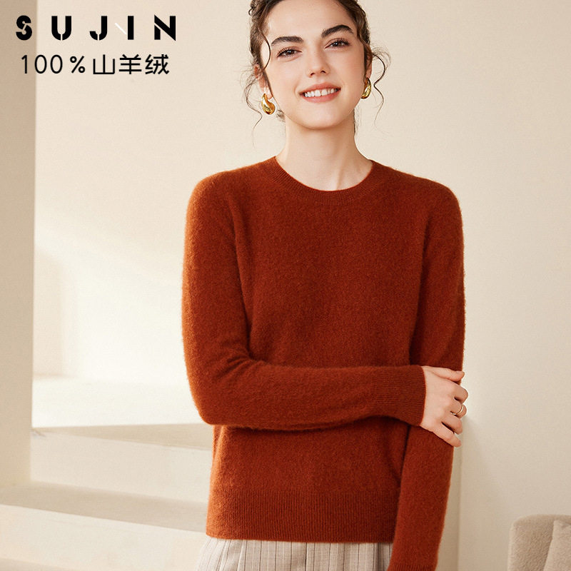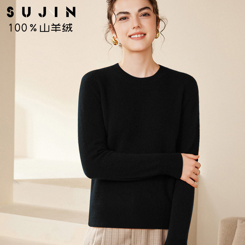 宽松时尚 素锦2026春季 秋冬新款 圆领平面纯色休闲山羊绒衫 女士 新款