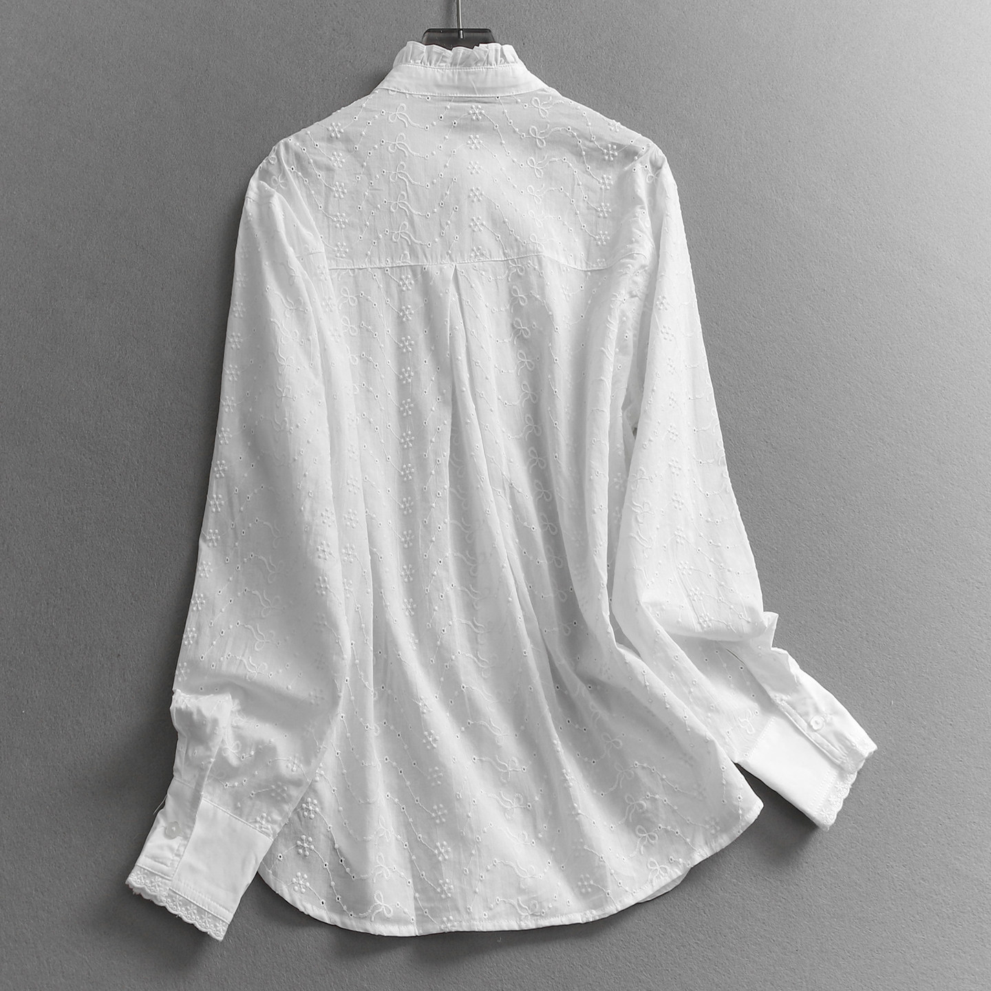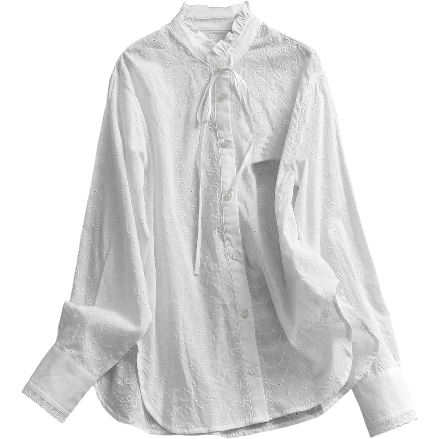 W915 减龄女衬衫 纯色重工刺绣镂空花边立领宽松显瘦2026春新款 长袖