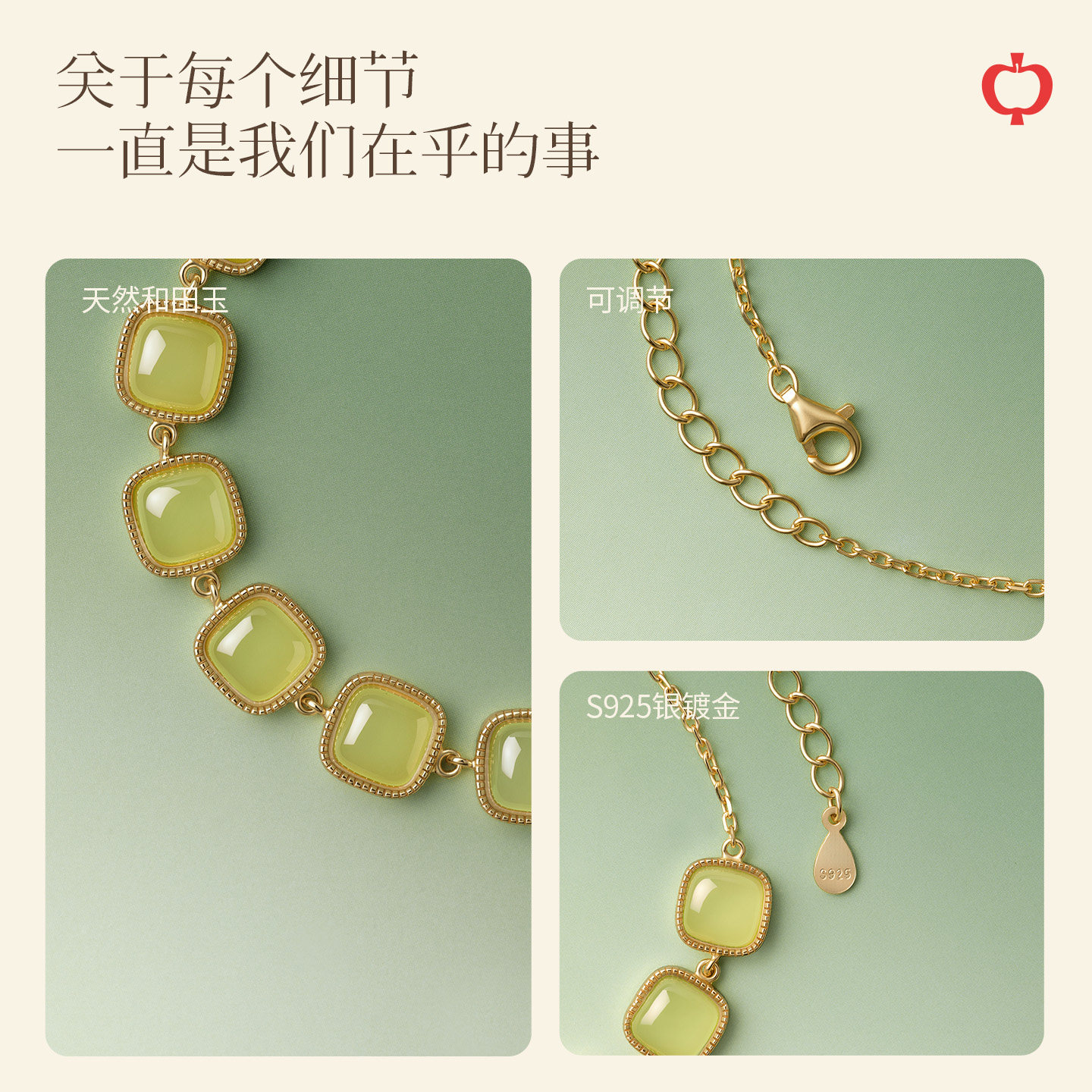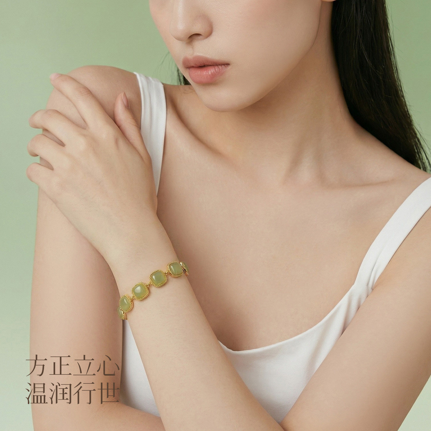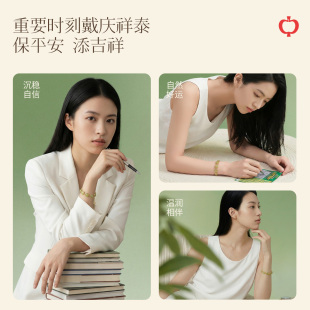 庆祥泰天然和田玉手链纯银女款 晴水小方糖玉石手串生日礼物送女友