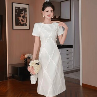 小众轻奢气质圆领显瘦裙子 新款 22045 高级感收腰连衣裙女2026夏季