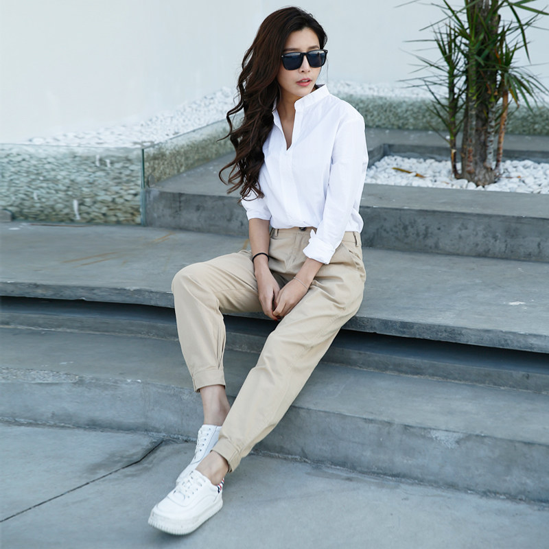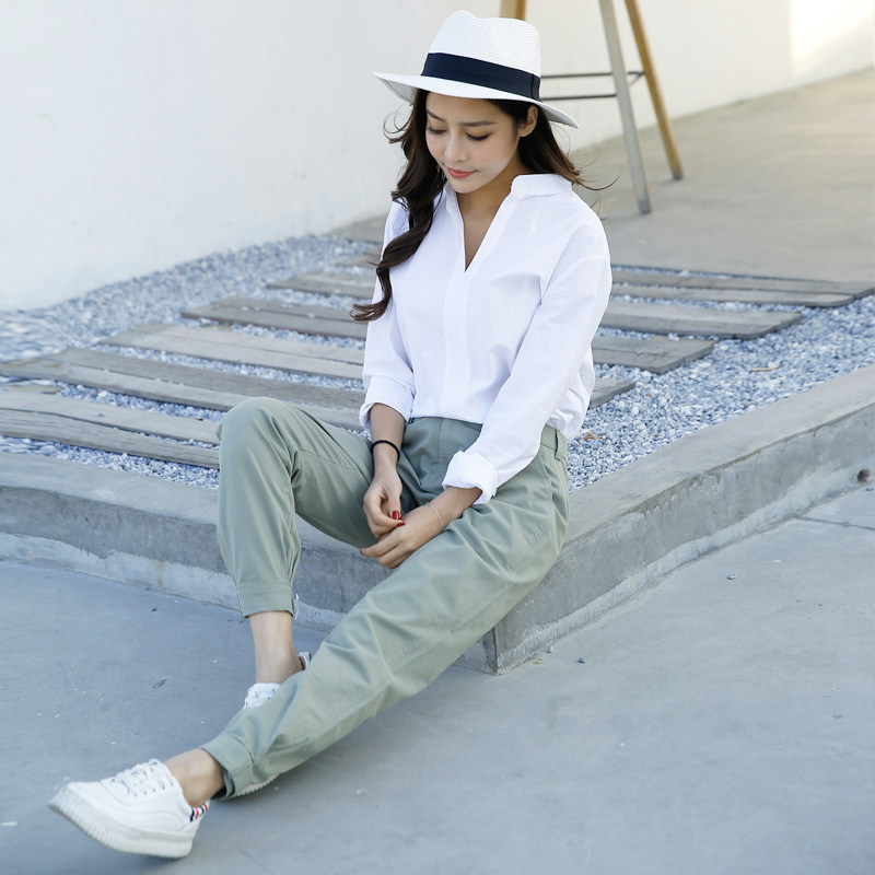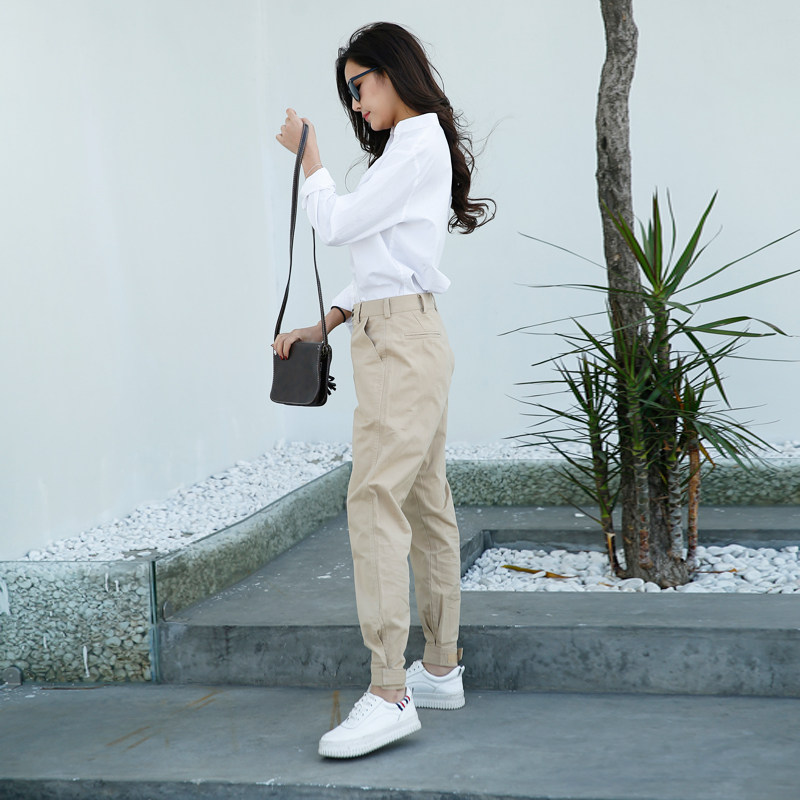 裤 工装 夏季 薄款 九分 军绿色裤 小个子束脚休闲哈伦女裤 子女2025新款