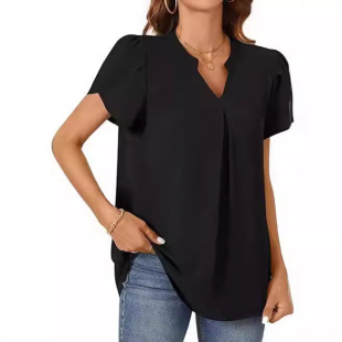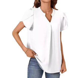short sleeved 衬衫 宽松V领短袖 neck 简约时尚 Loose shirt