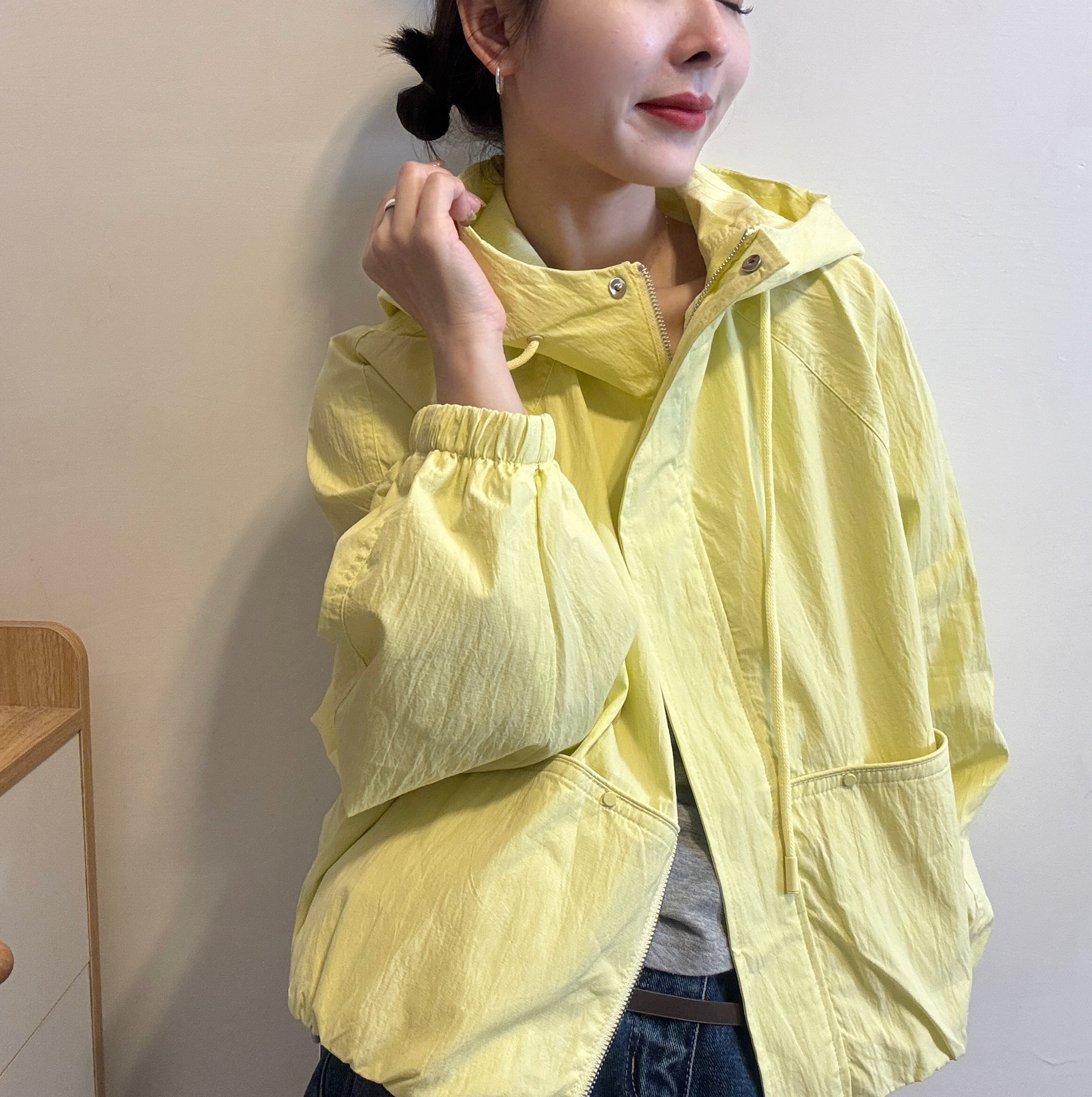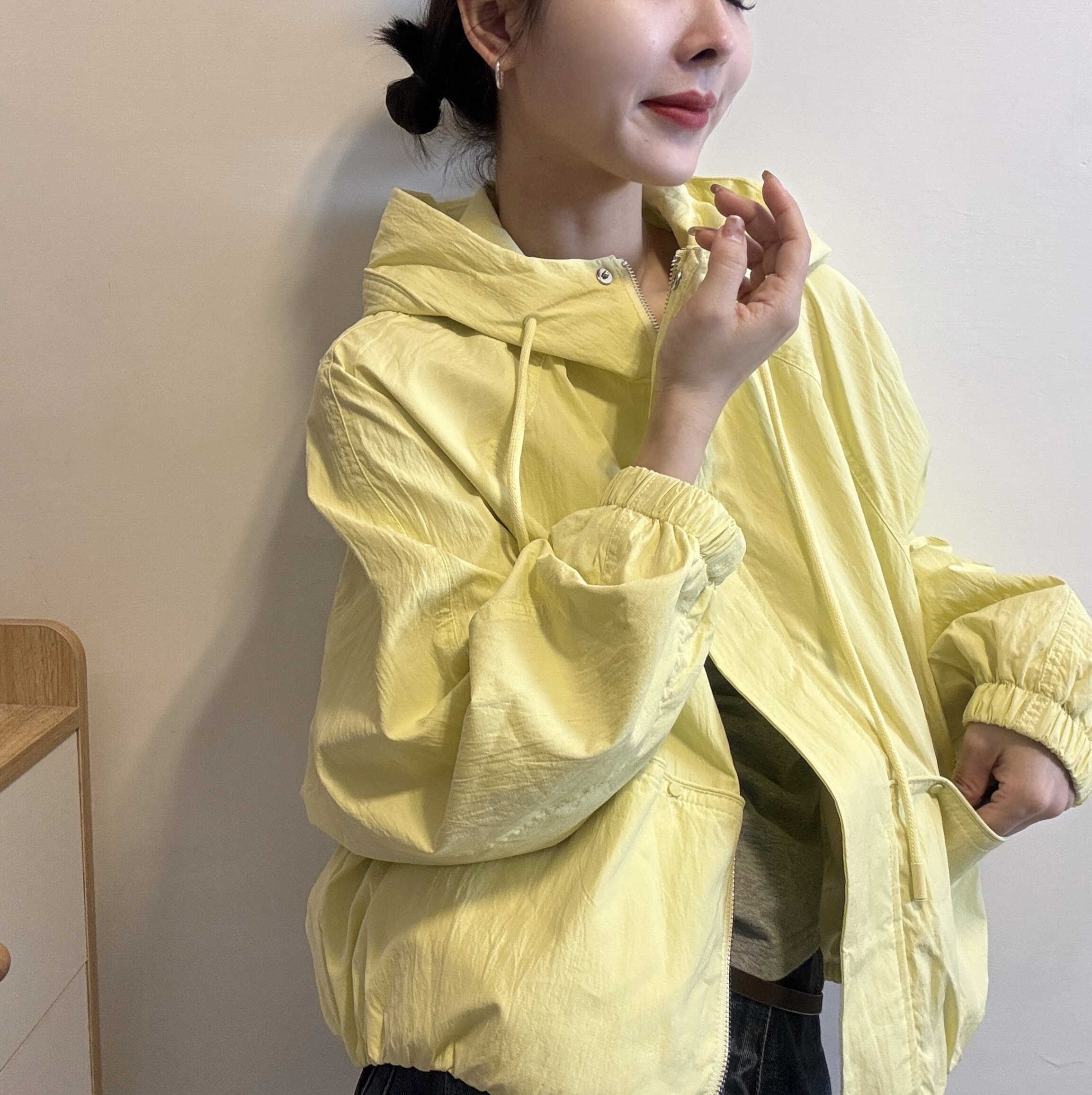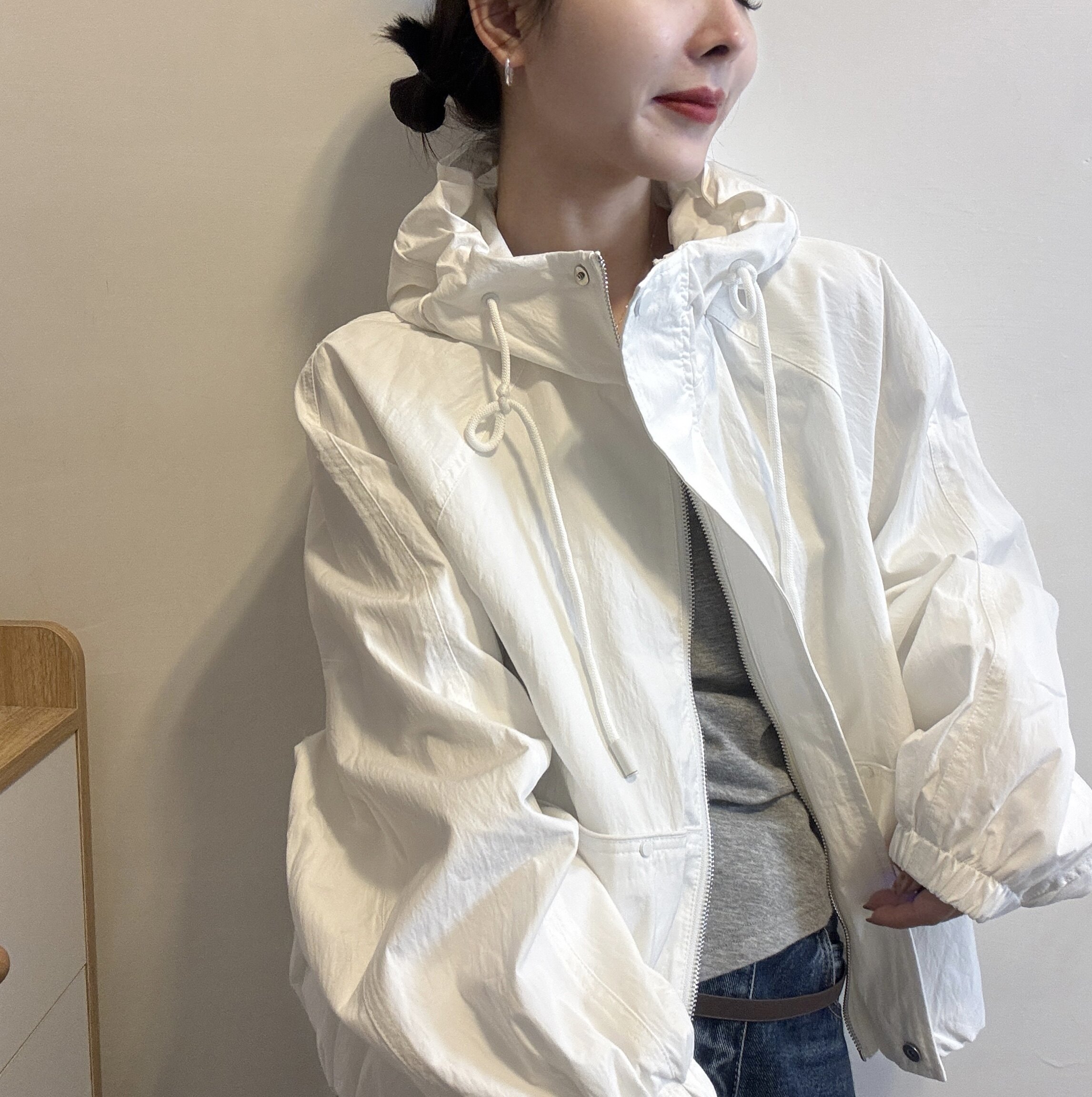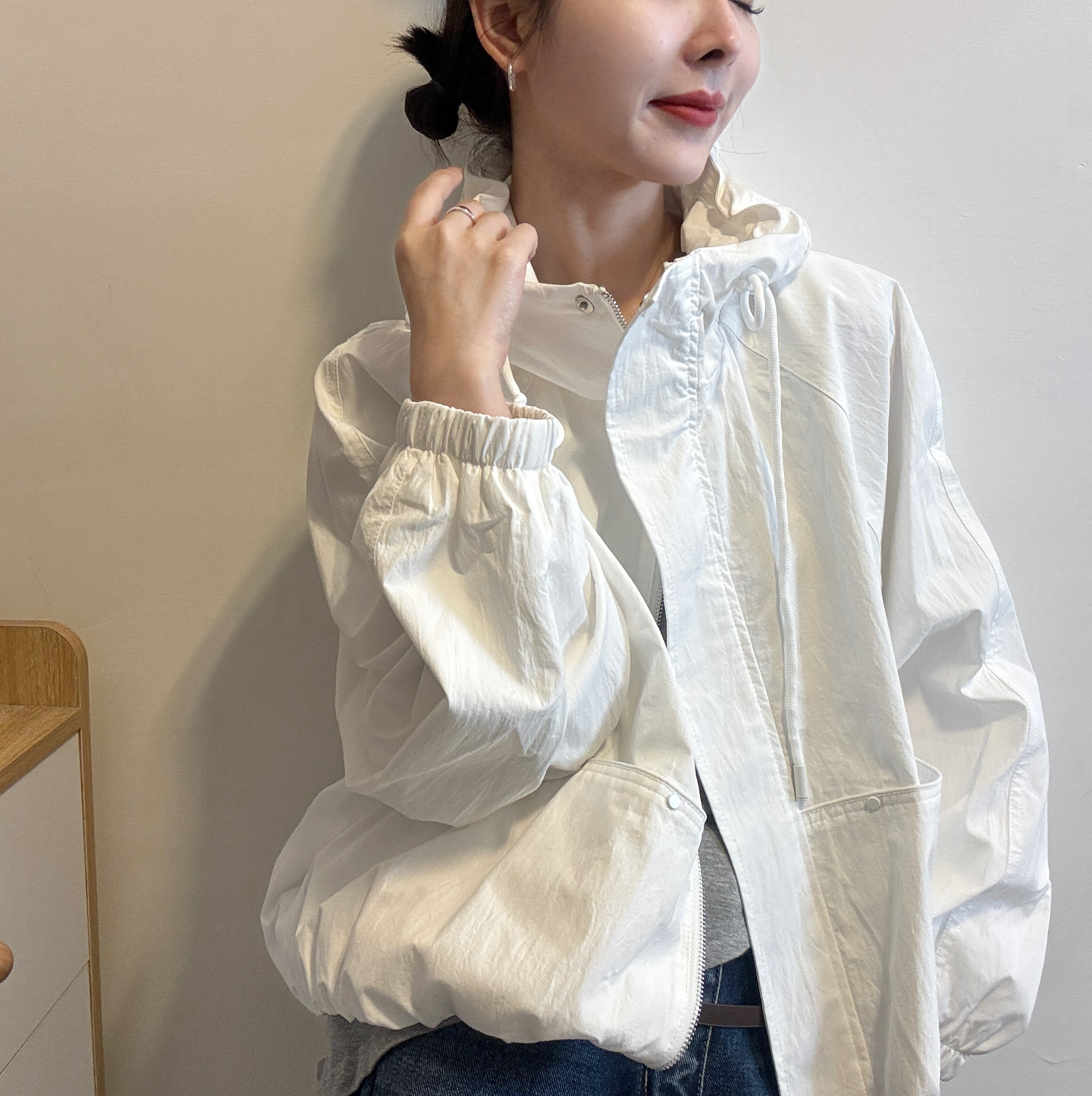 宽松显瘦百搭休闲上衣 韩版 纯色连帽短款 冲锋衣外套两件套女26春款