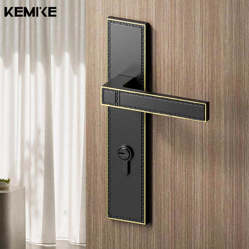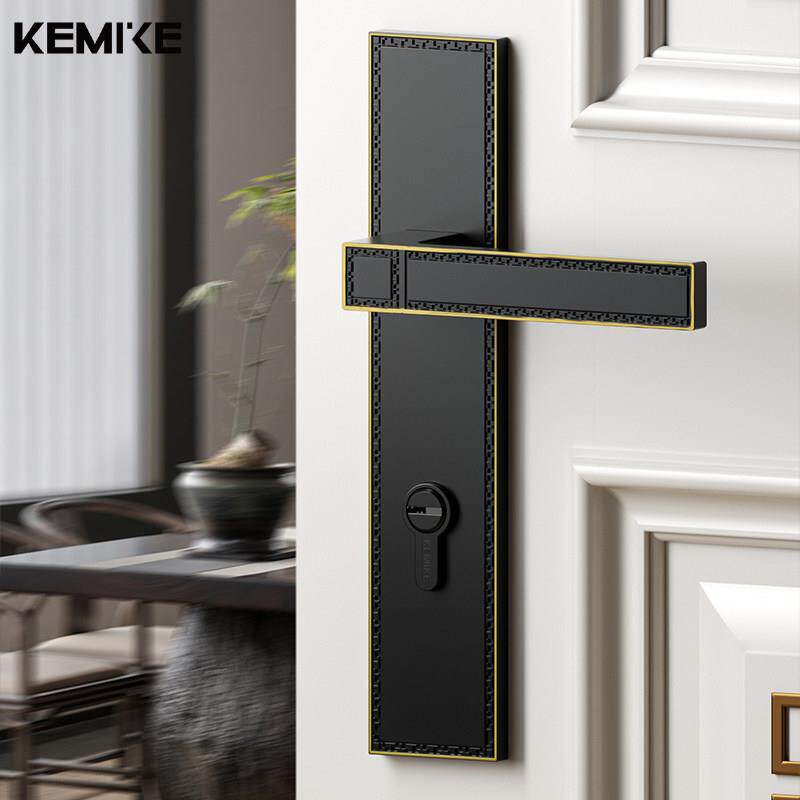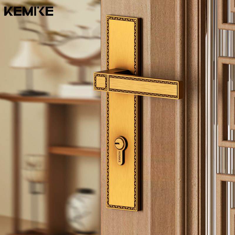 柯米克黄古铜中式 面板门锁卧室复古实木门房门磁吸锁室内静音门锁