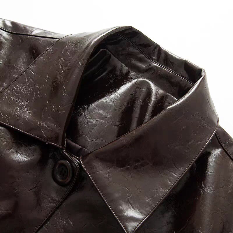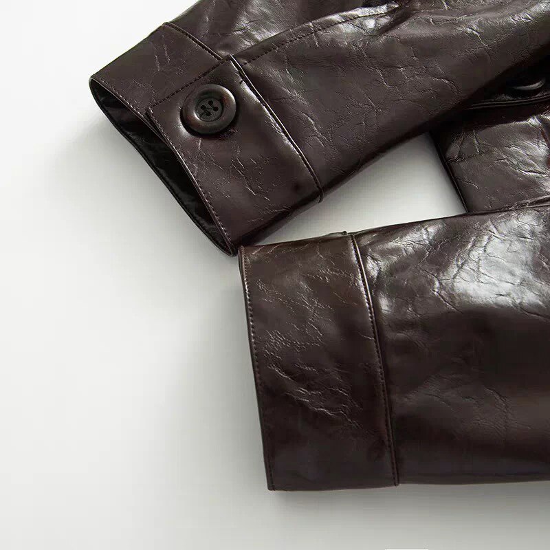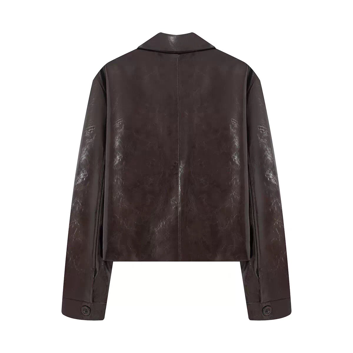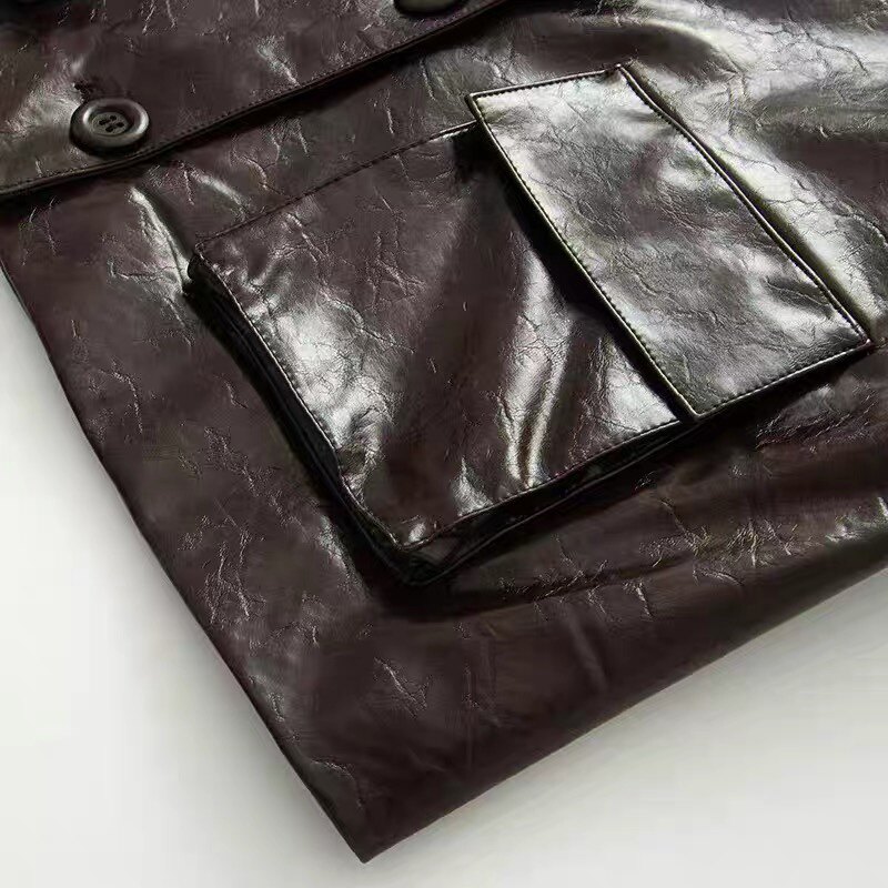 皮衣外套 外套0.77 翻领单排扣亮面漆皮双口袋甜酷风气质百搭短款