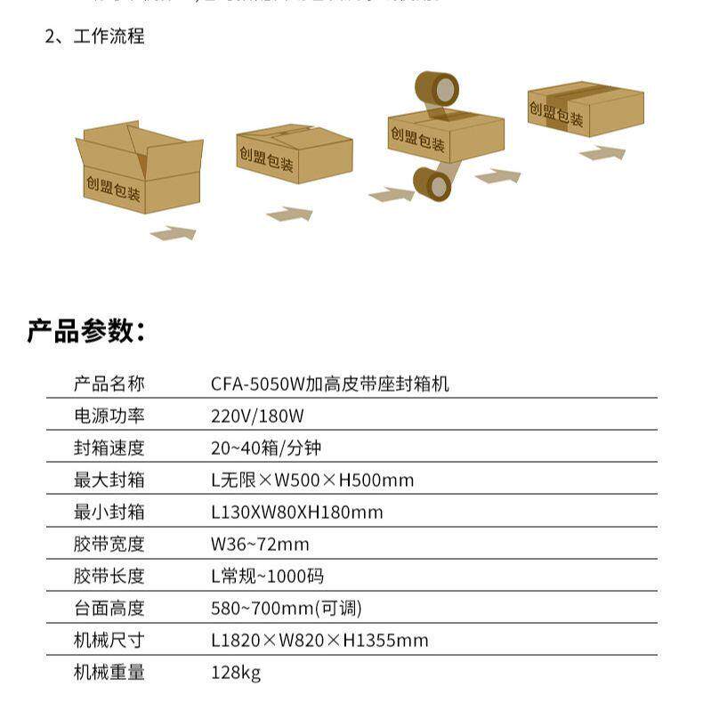 创盟CFA 5050W扁高型纸箱打包机牛奶饮料箱胶带封口机自动封箱机