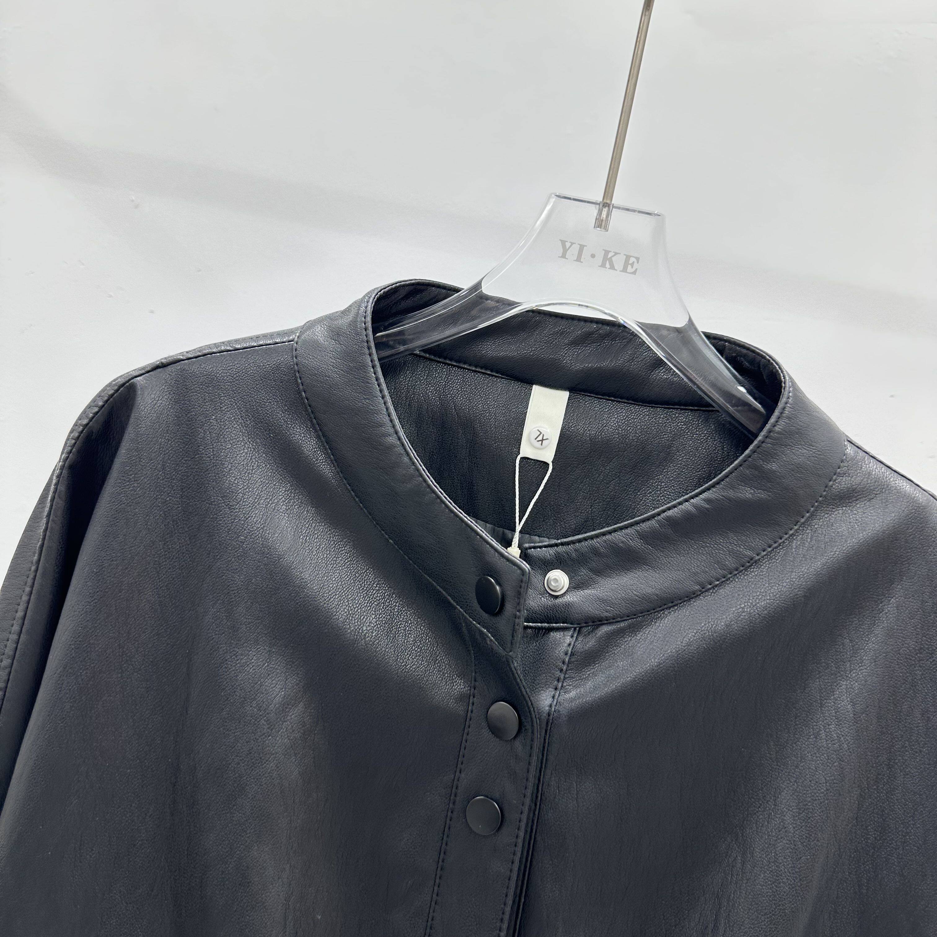 女装 时尚 圆领短款 26A810专柜正品 妈妈装 春季 大码 皮衣外套女10 新款