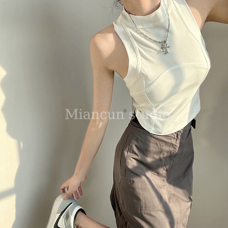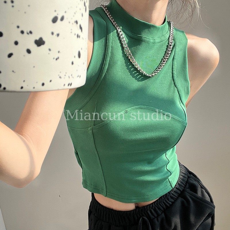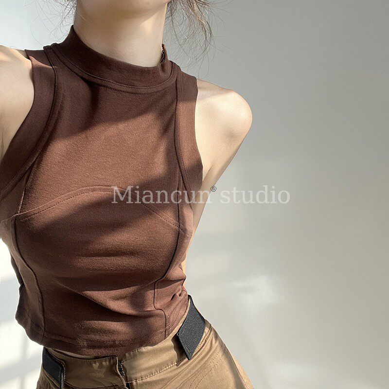 立领小吊带 修身 工字背心设计感拼接无袖 内搭打底上衣女夏秋新短款
