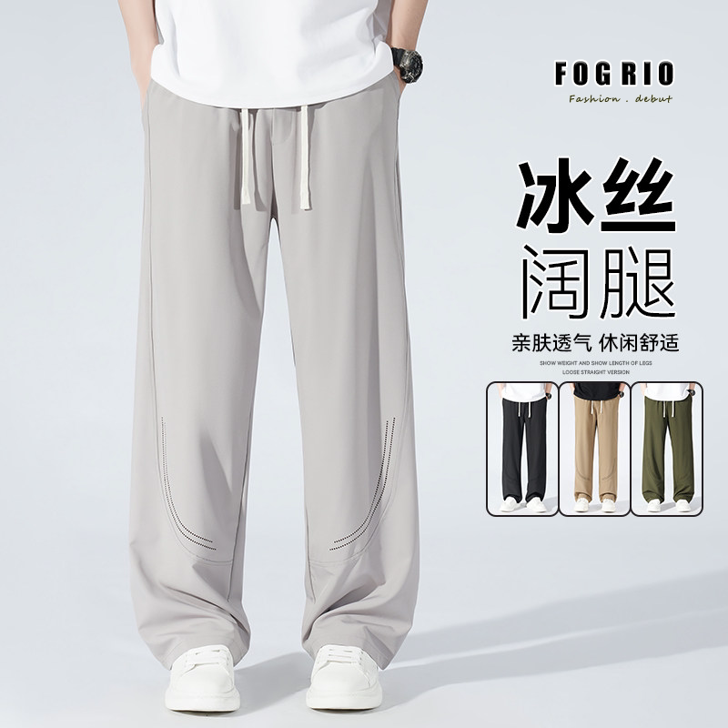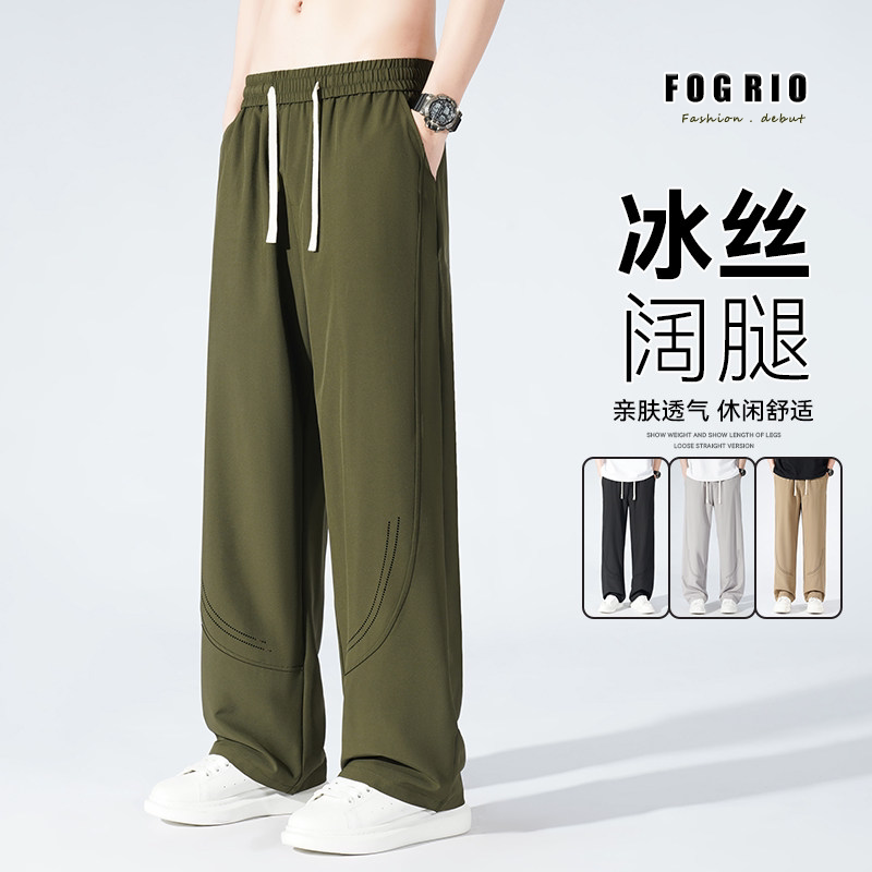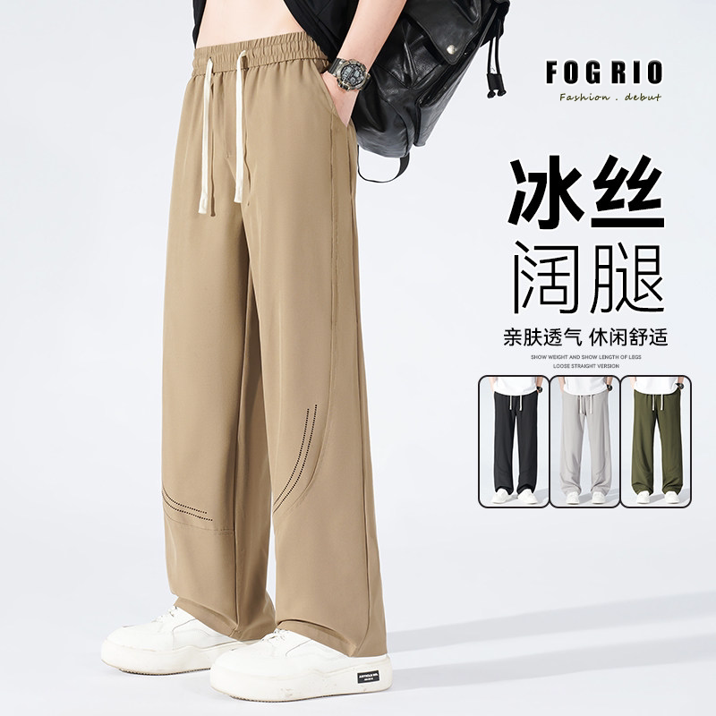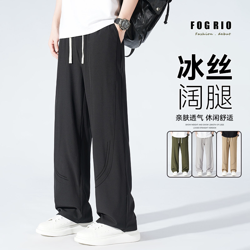 垂感男女透气裤 FOG 港风宽松阔腿拖地裤 冰丝休闲直筒长裤 RIO夏季