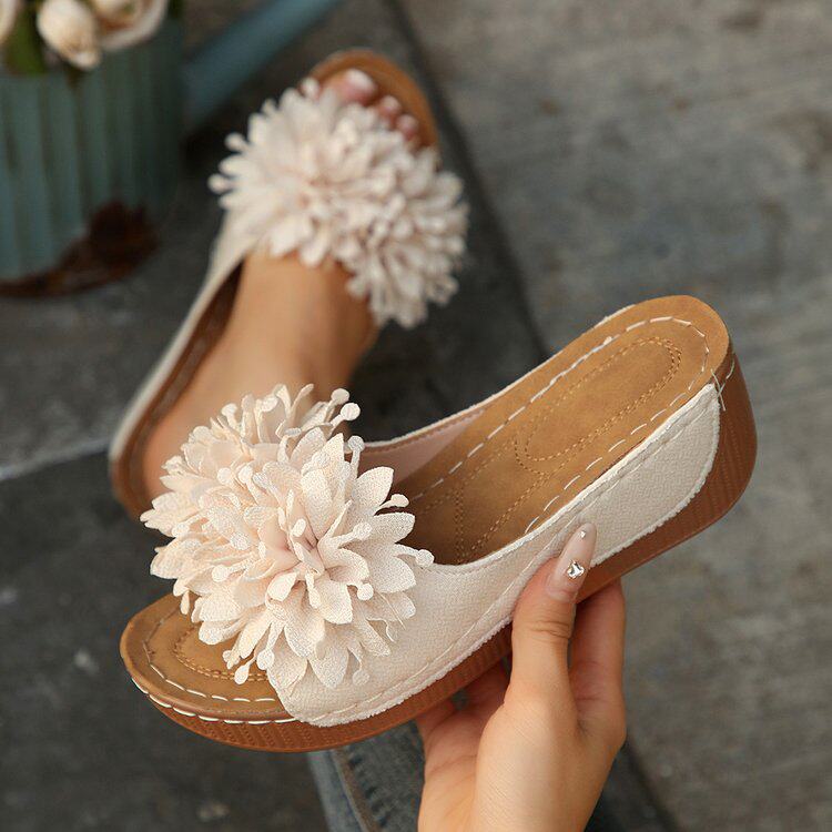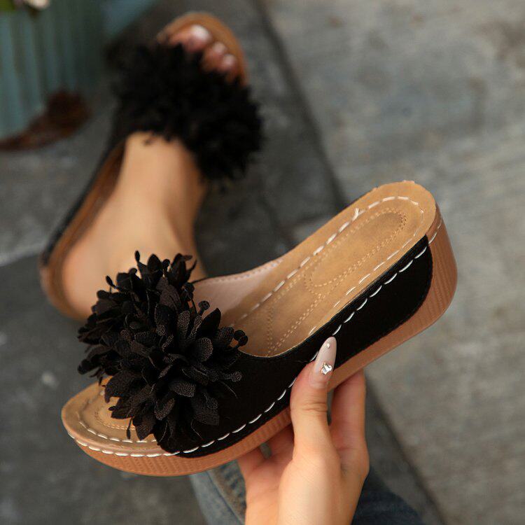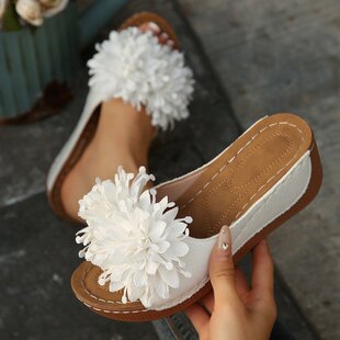 配裙子凉拖女 拖43厚底防滑轻便一字拖鞋 夏季 女士花朵凉鞋