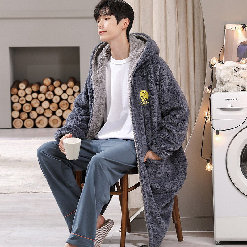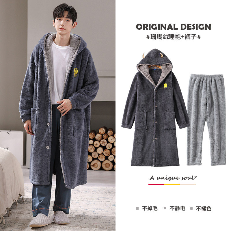 浴袍男冬天法兰绒家居服青年 宽松长款 秋冬珊瑚绒睡袍男士 睡衣大码