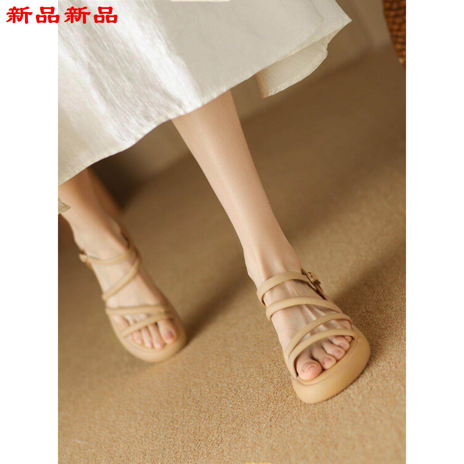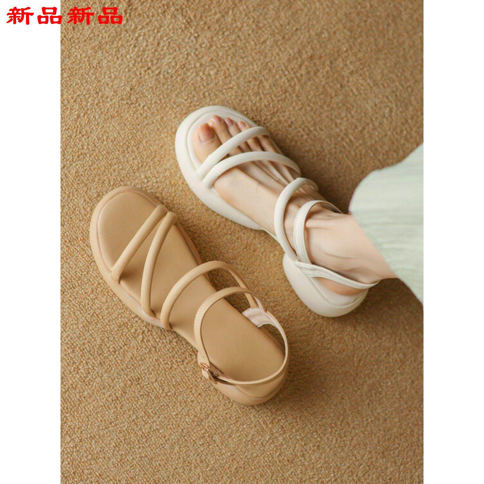 凉鞋 新款 透气风大码 复韩版 简约小众ins古罗马女厚底露趾休闲鞋