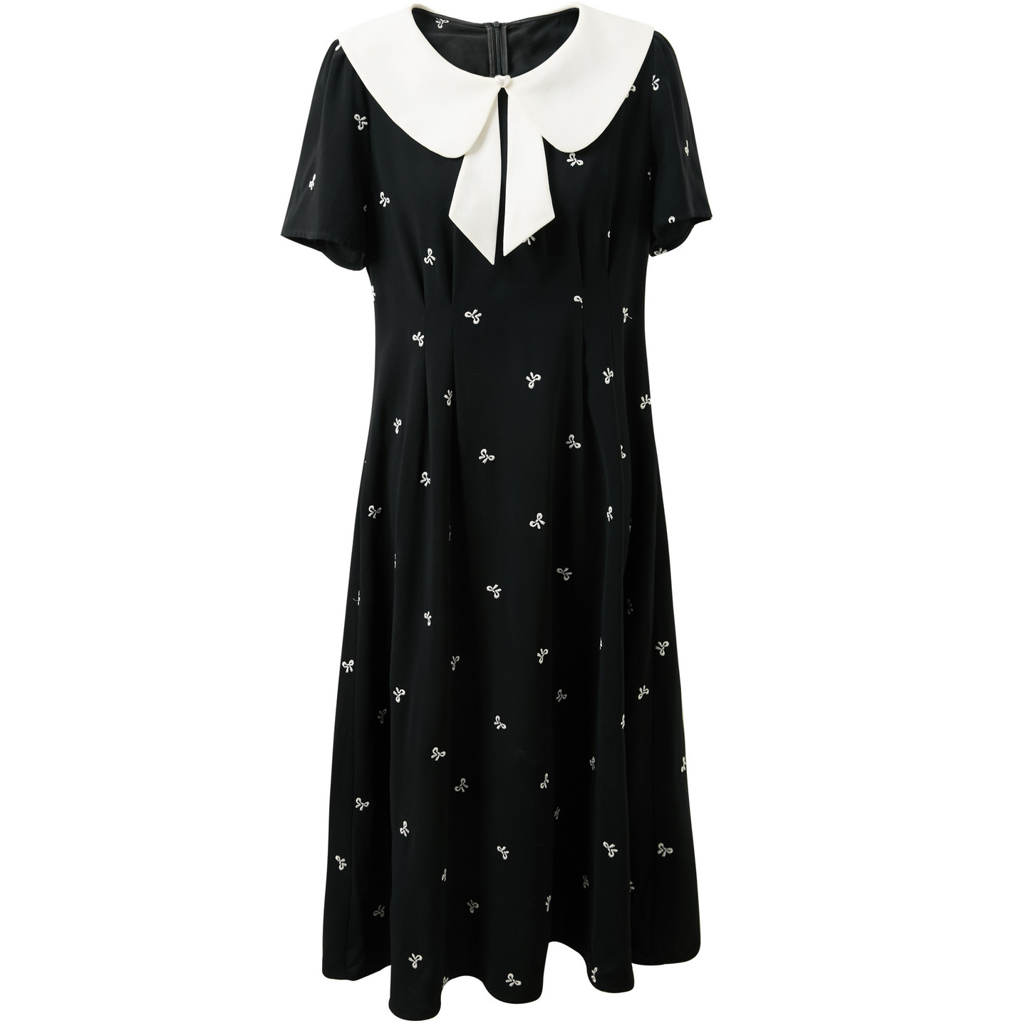 新款 2026夏季 娃娃领连衣裙收腰蝴蝶结绣花胖MM 女装 三彩若潮大码