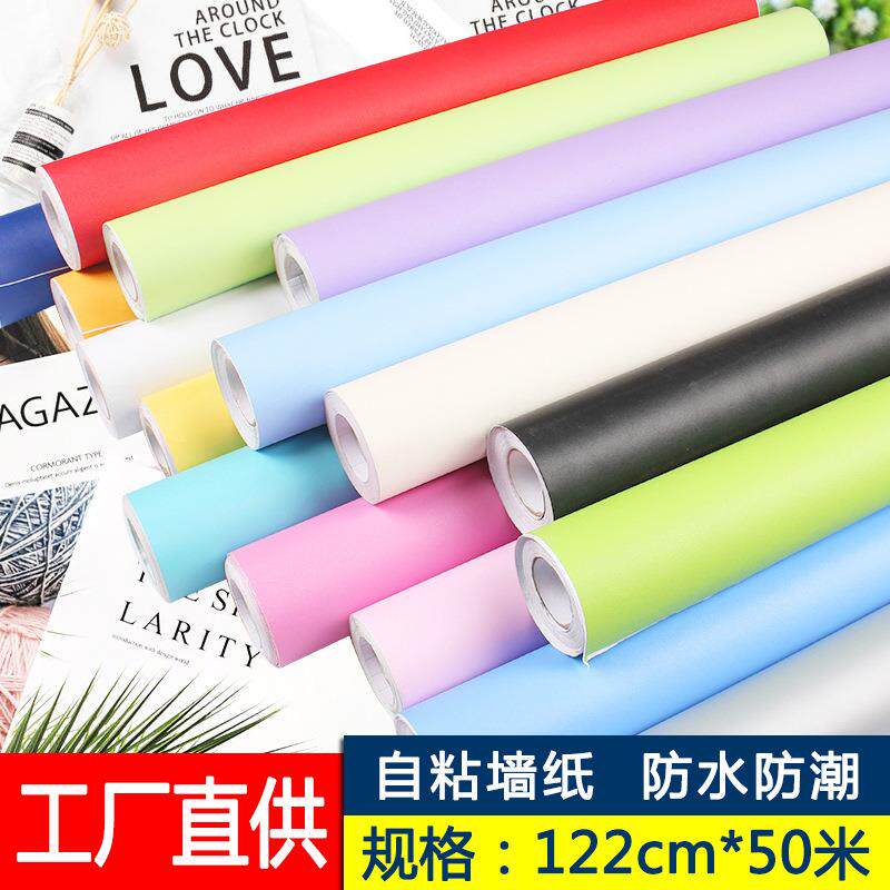 纯色PVC加厚墙纸自粘壁纸卧室背景墙壁装 饰防水宿舍家具翻新贴纸