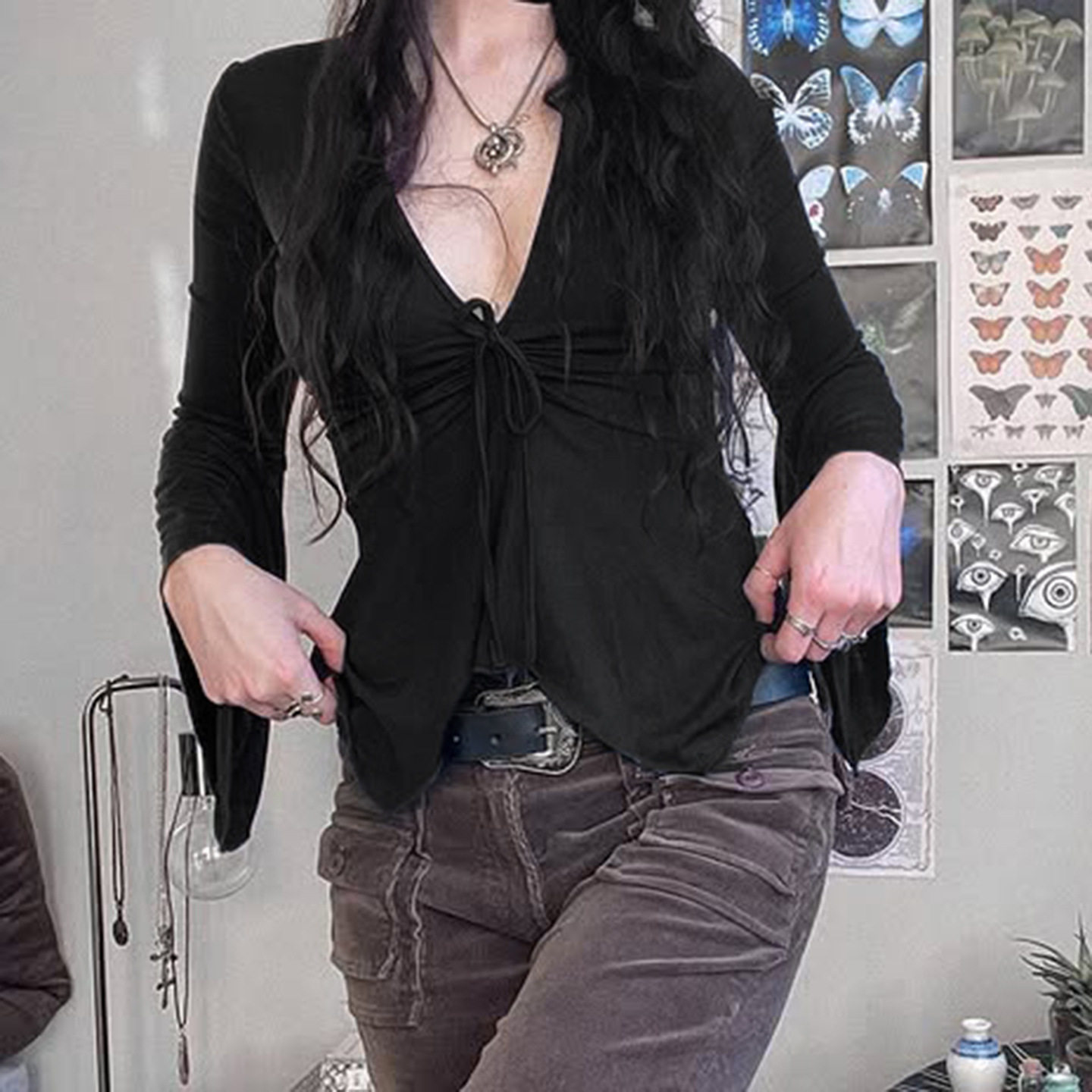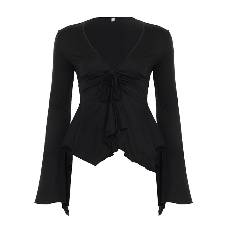 Black Sleeve 暗黑V领系带长袖 Tee Long T恤 Tie 秋季 Neck