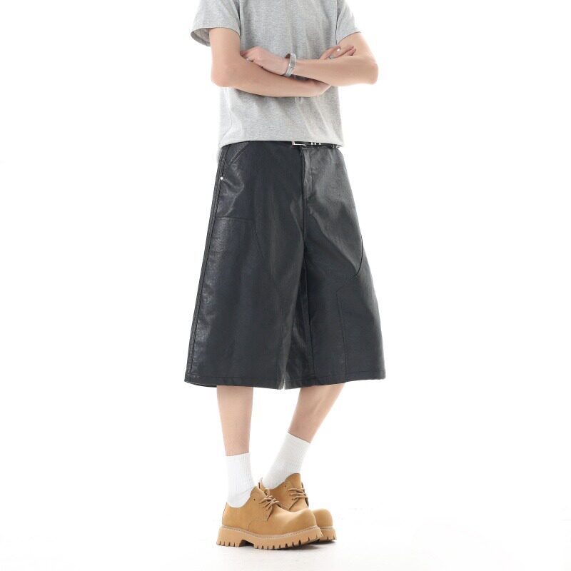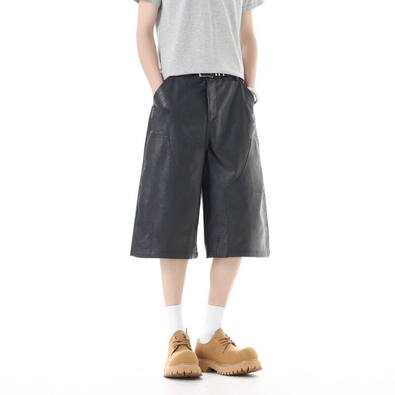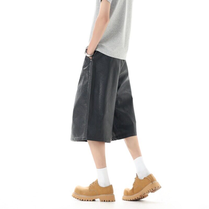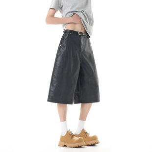 阔腿裤 夏季 男女宽松设计感直筒裤 复古PU休闲七分皮裤 百搭潮牌 美式