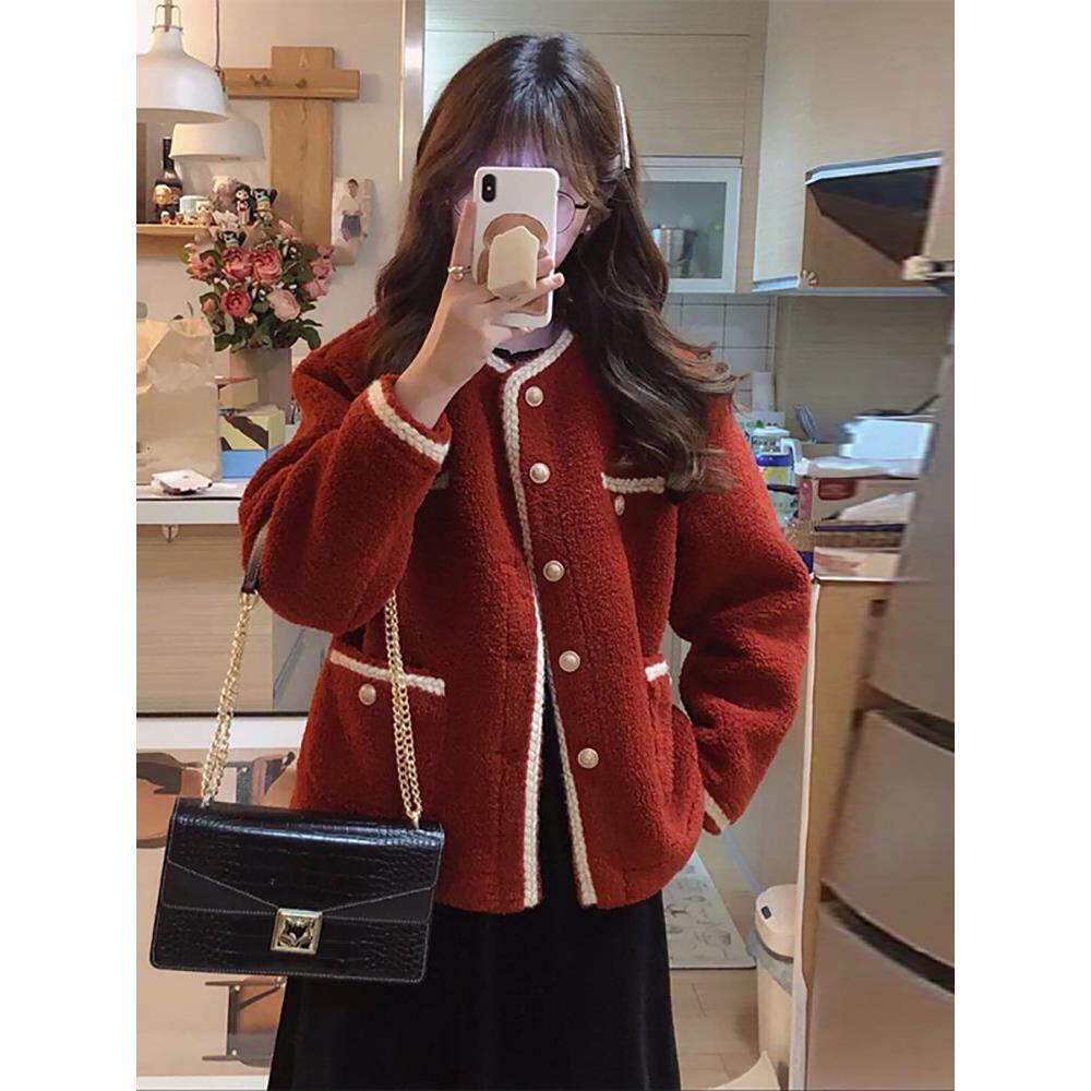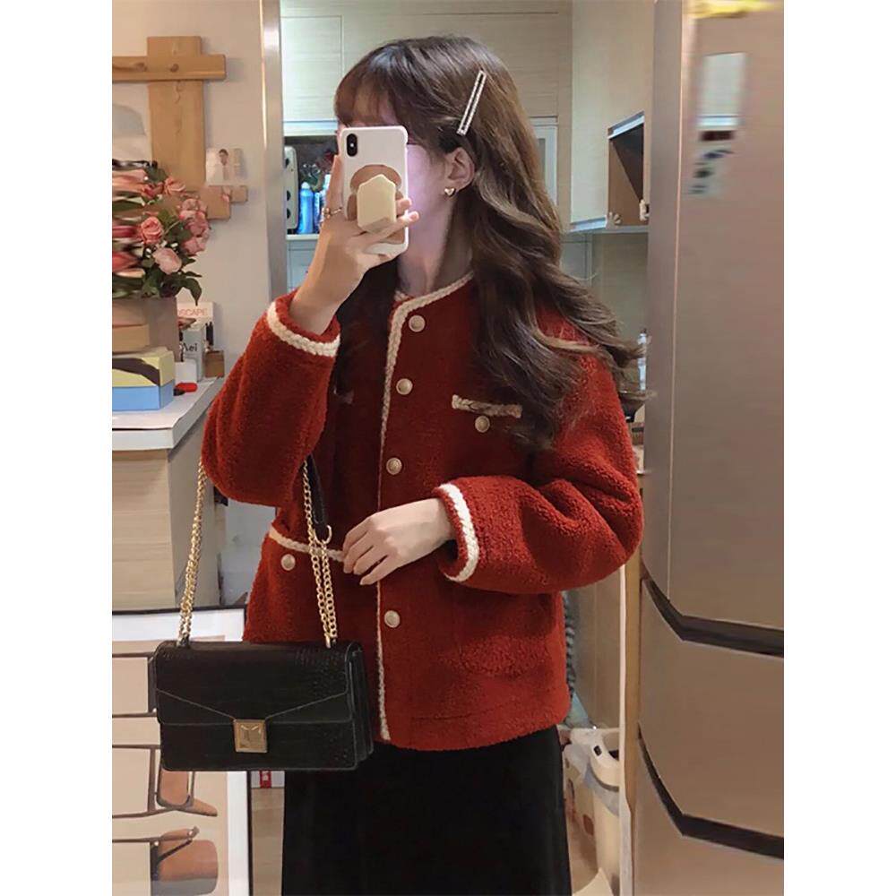本命年红色小香风羊羔毛外套女装 早春装 GARDEN 加厚夹克 UNDER
