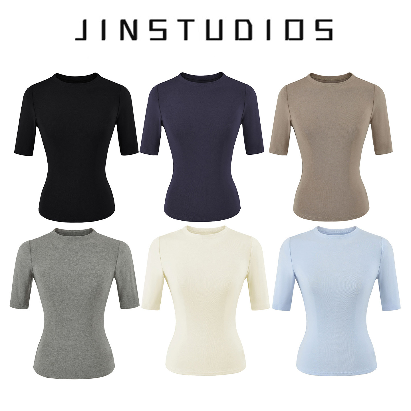 显瘦百搭上衣 T恤修身 2026春夏纯欲辣妹风纯色基础款 圆领套头中袖
