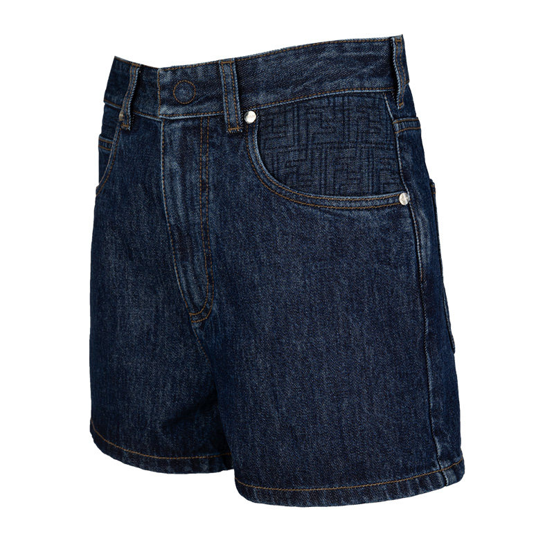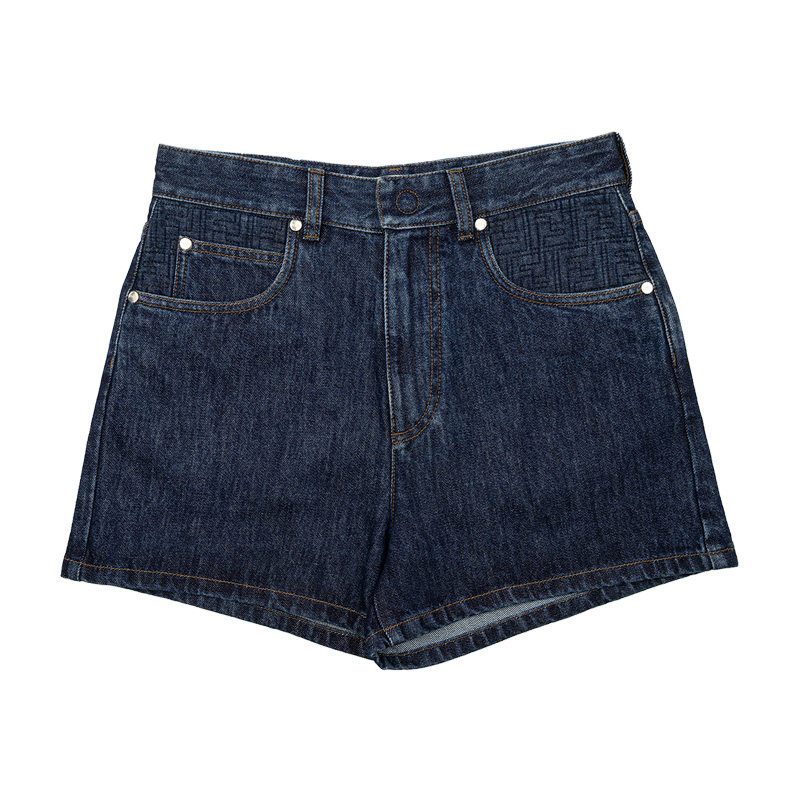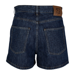 女士2026新款 FENDI芬迪女经典 喇叭形五口袋绗缝FF图案牛仔短裤