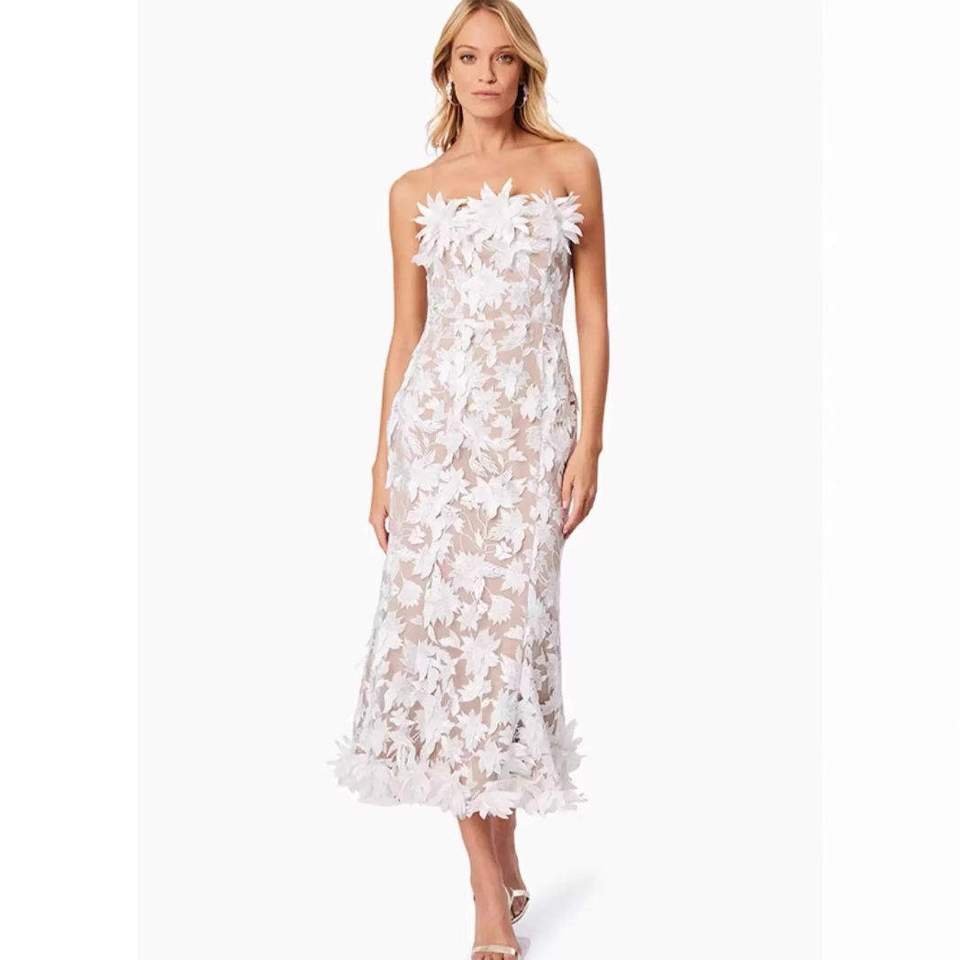 晚礼服长裙高腰 网纱刺绣抹胸连衣裙中长款 2025欧美女性感时尚 夏季