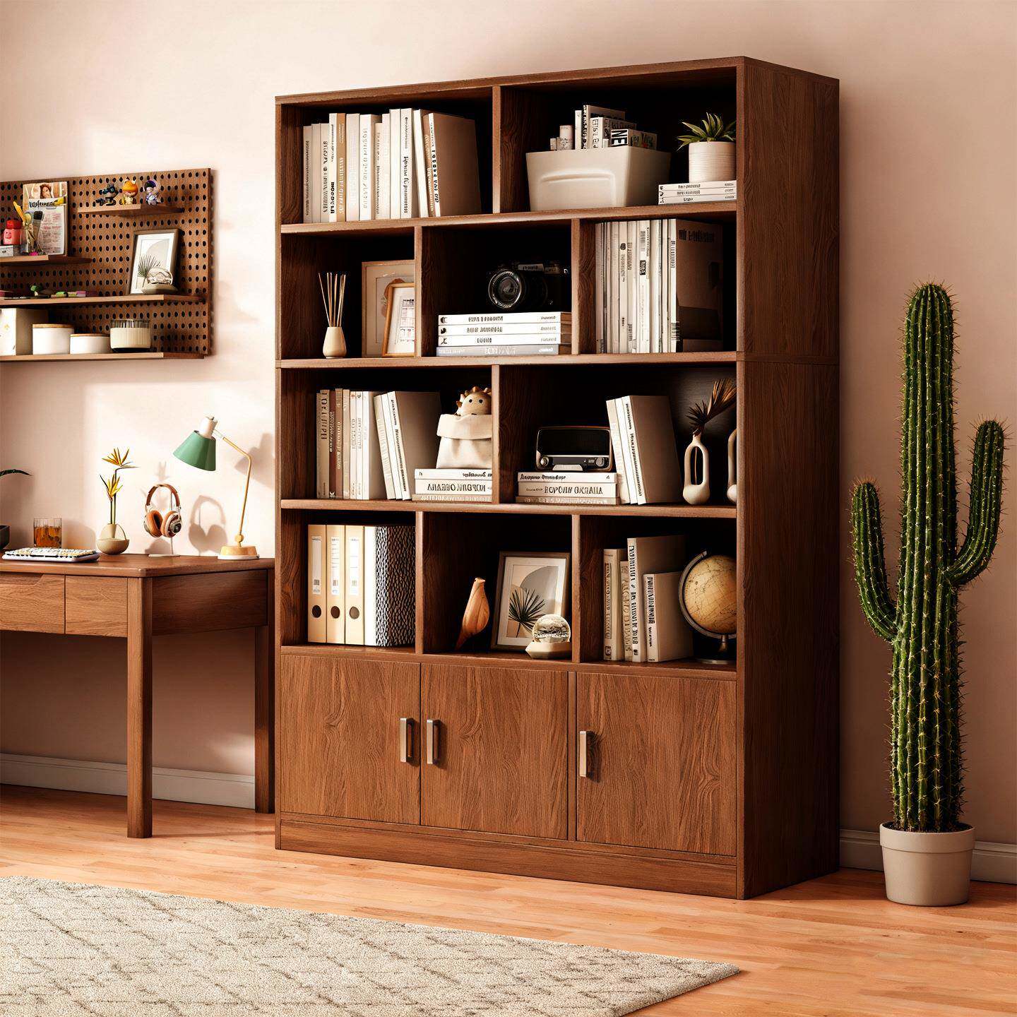 书架置家物架柜子多层收纳储物SJ0216柜客厅生学用带柜门书落地靠