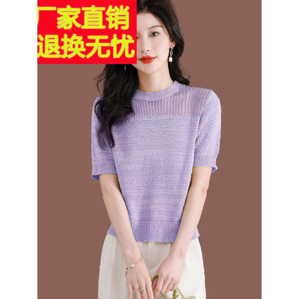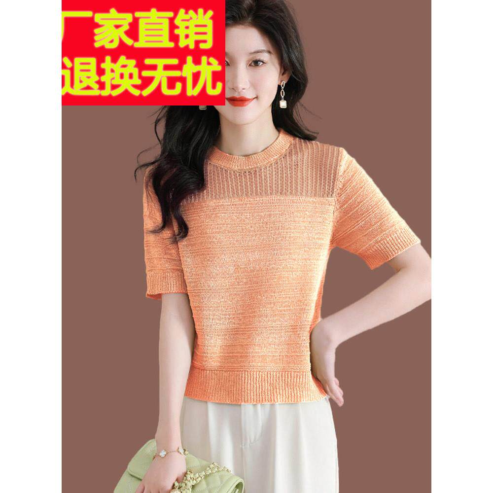 新款 t恤2025夏季 剪裁上衣小短冰丝针织品 短袖 桑蚕丝女式