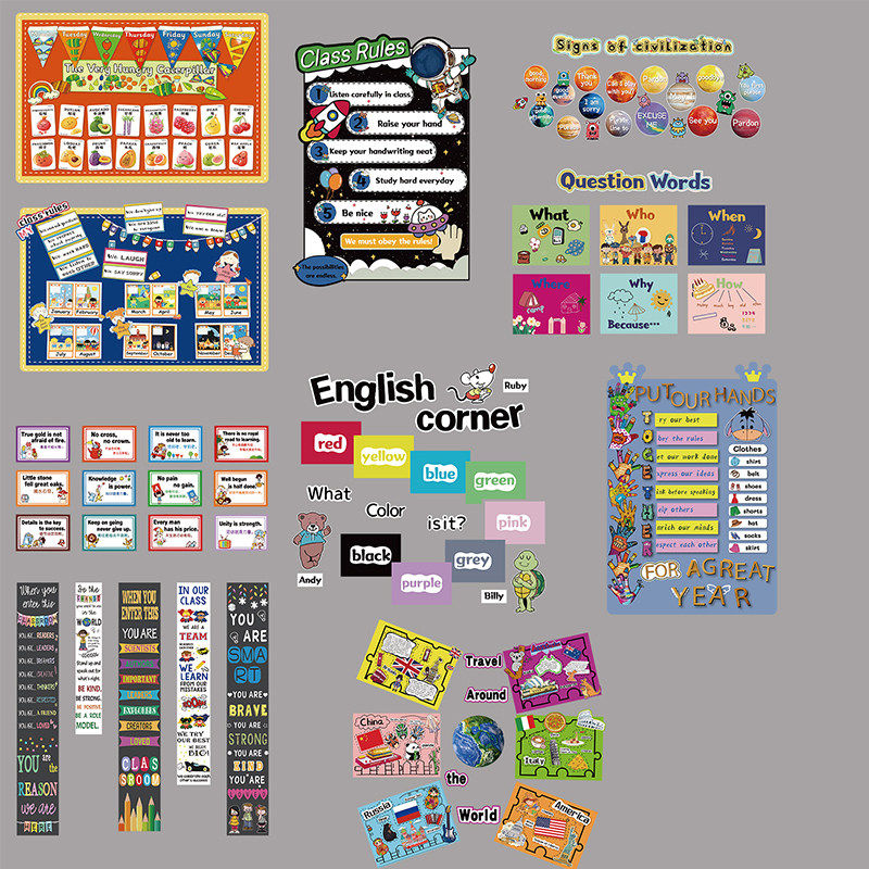 英语角教室文化墙贴布置班级幼儿园环创英语教学装 饰立体贴纸设计