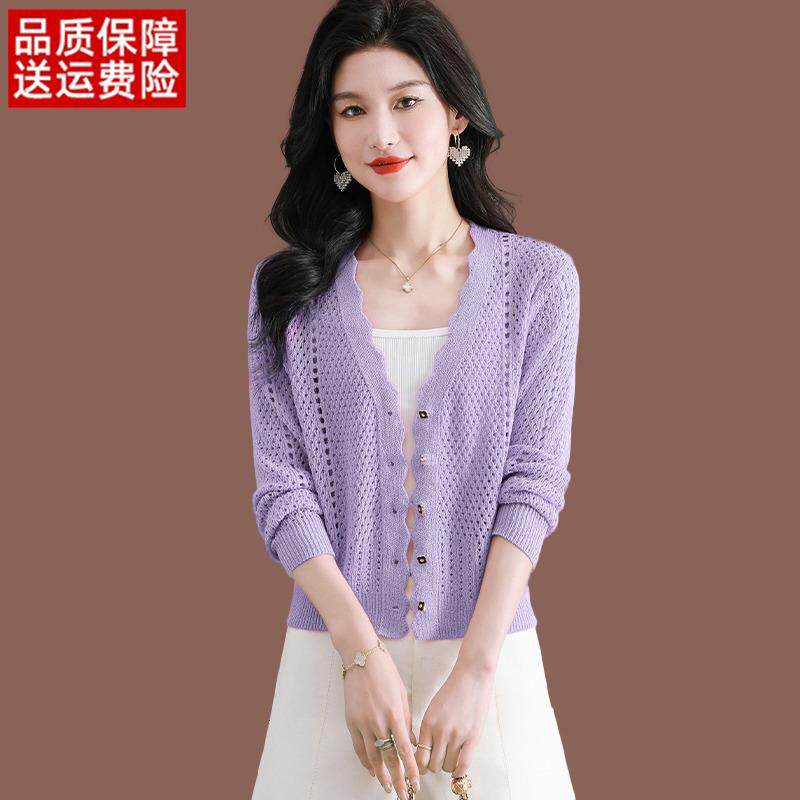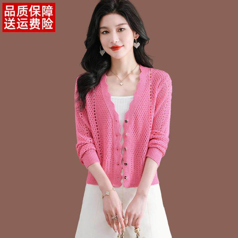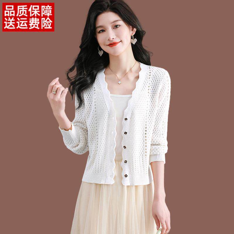 衫 防晒上衣薄款 女夏季 配裙子短款 冰丝针织小外 新款 桑蚕丝镂空开