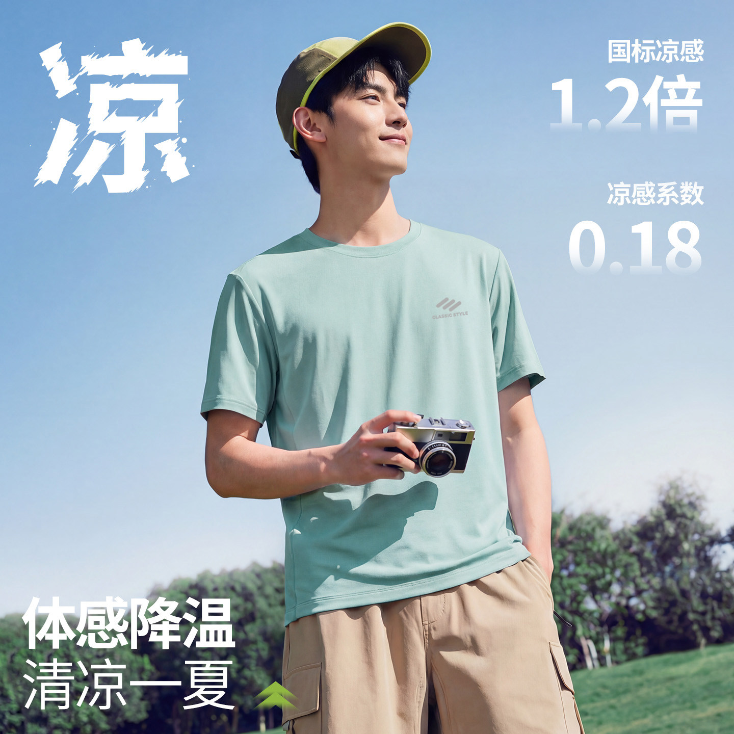 男款 班尼路男士 简约冰丝短袖 凉感透气运动上衣美式 防汗渍T恤夏季
