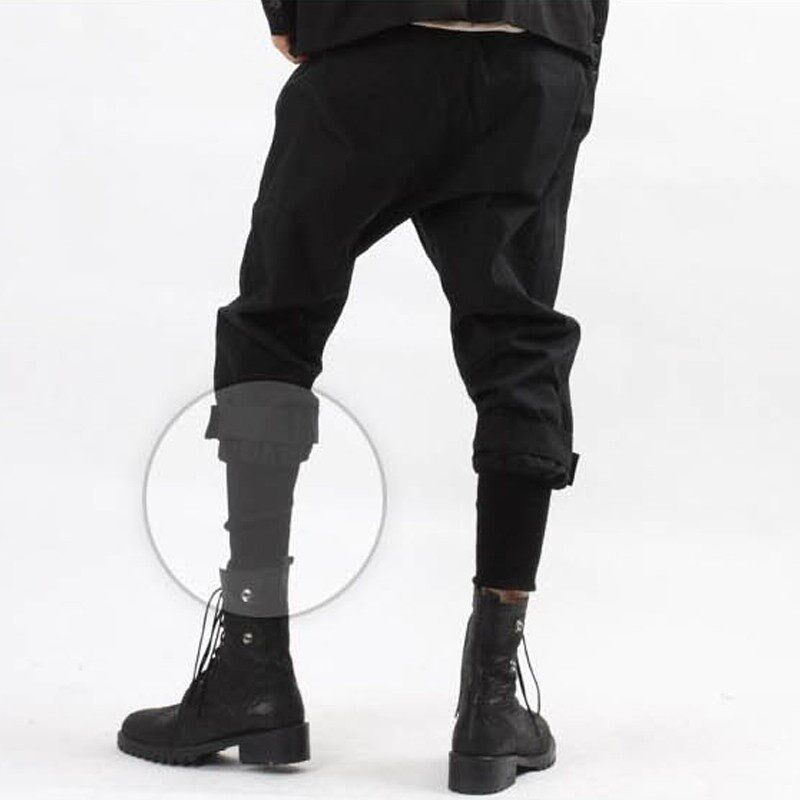 七分裤 腿青少年百搭裤 靴裤 搭扣设计螺纹裤 配长靴骑马裤 男士