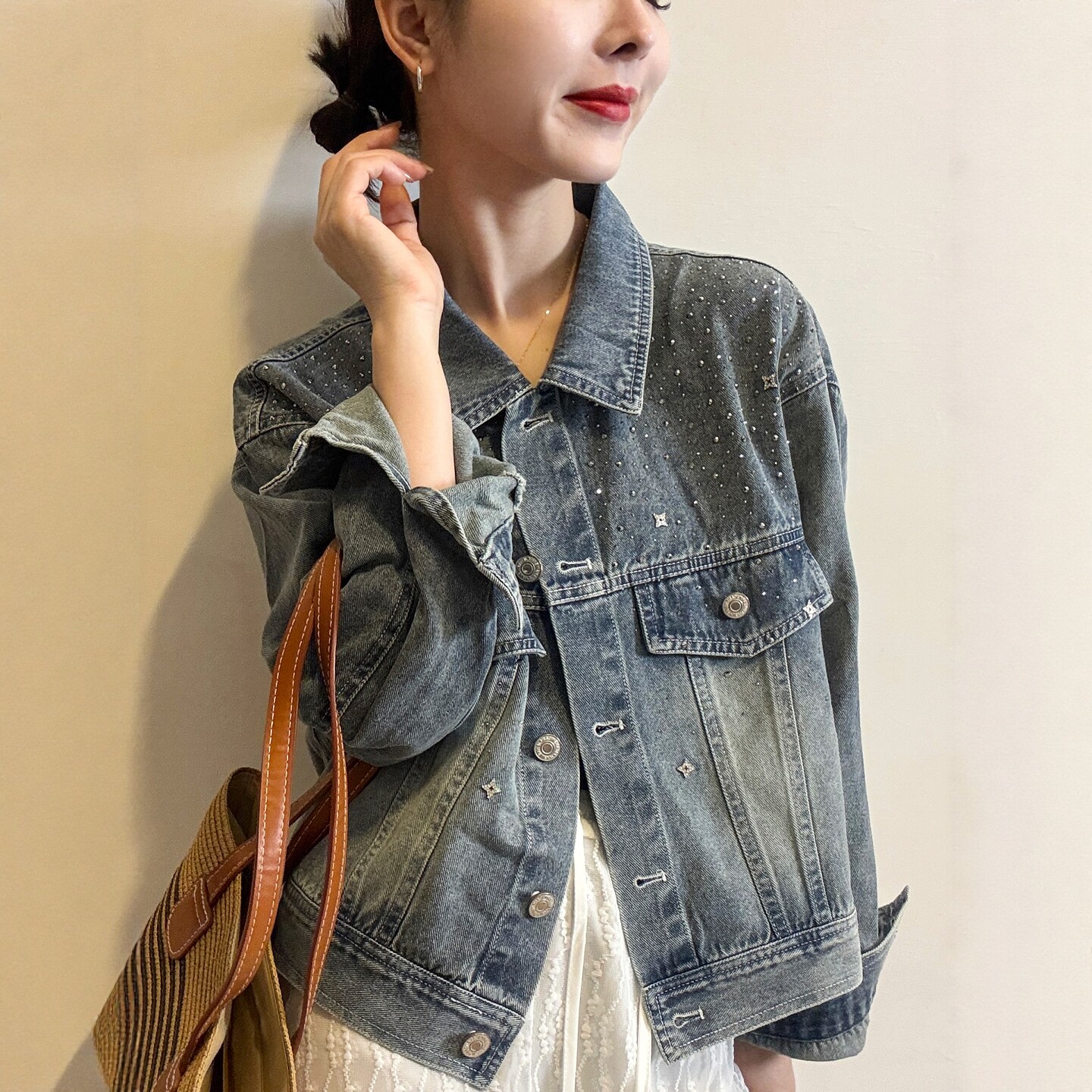 短款 欧货女装 牛仔衣潮 新款 重工烫钻做旧牛仔外套女欧洲站2026春装