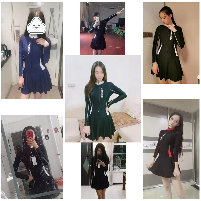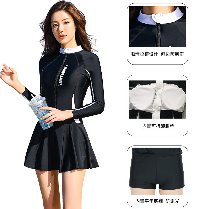 套装 泳衣女保守裙式 长裤 学生显瘦韩国长袖 防 连体n平角遮肚加大码