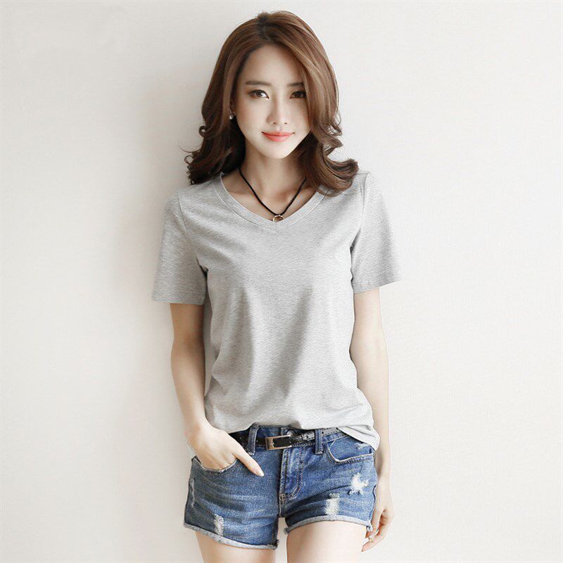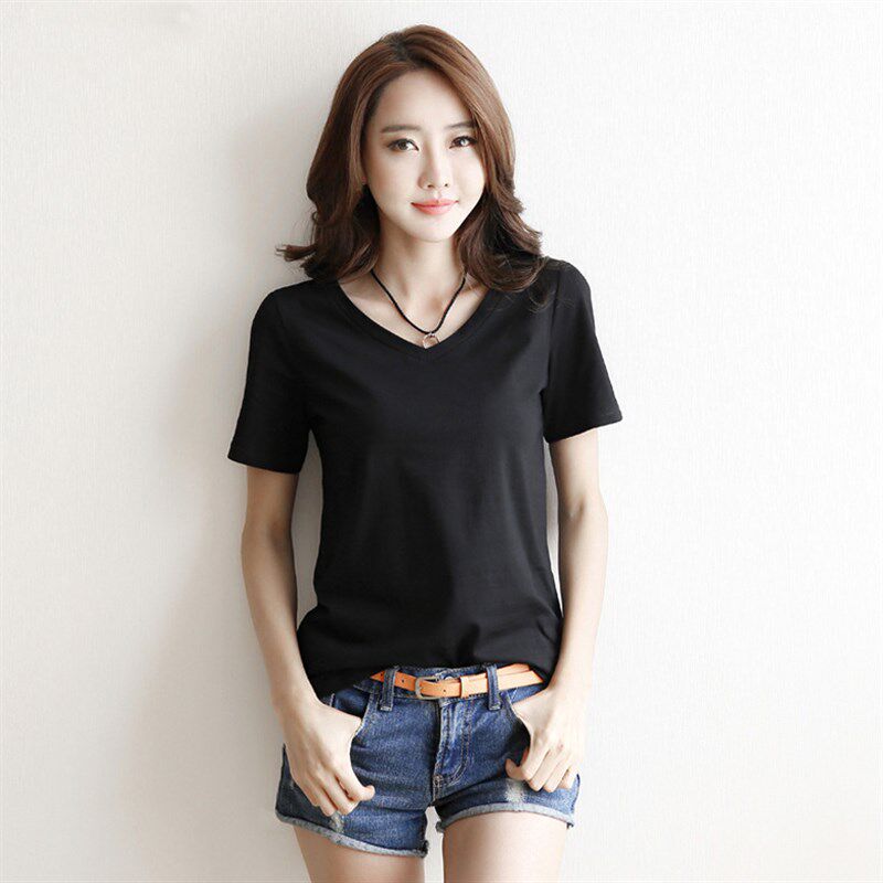 定制短袖 宽松棉工作服鸡心体订做印字logo照片图 V领t恤男女情侣装