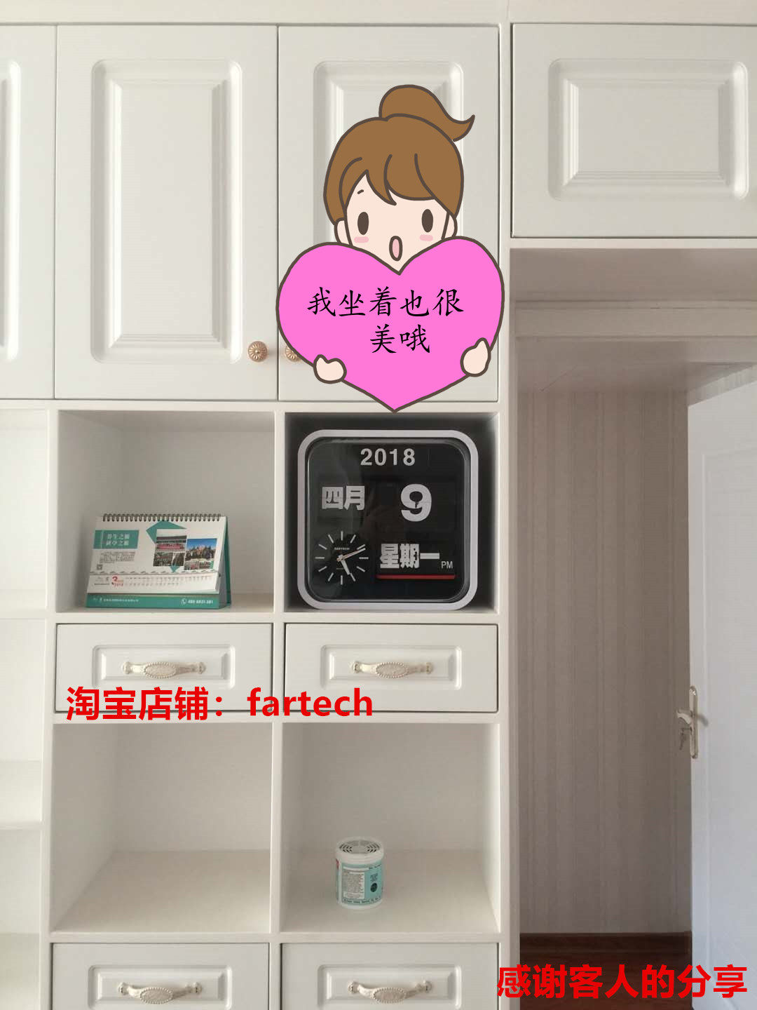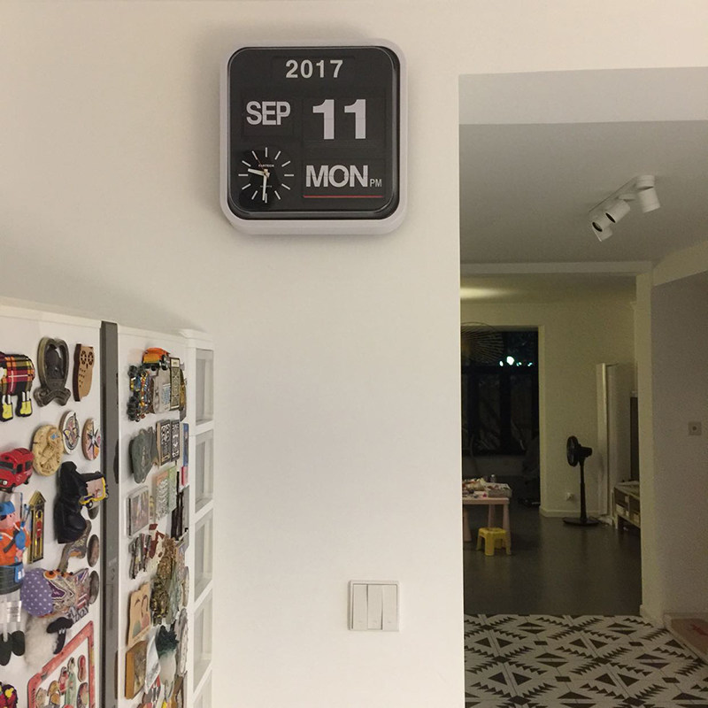 台湾Fartech翻页钟表万年历简约时尚 桌面时钟家用创意客厅挂钟