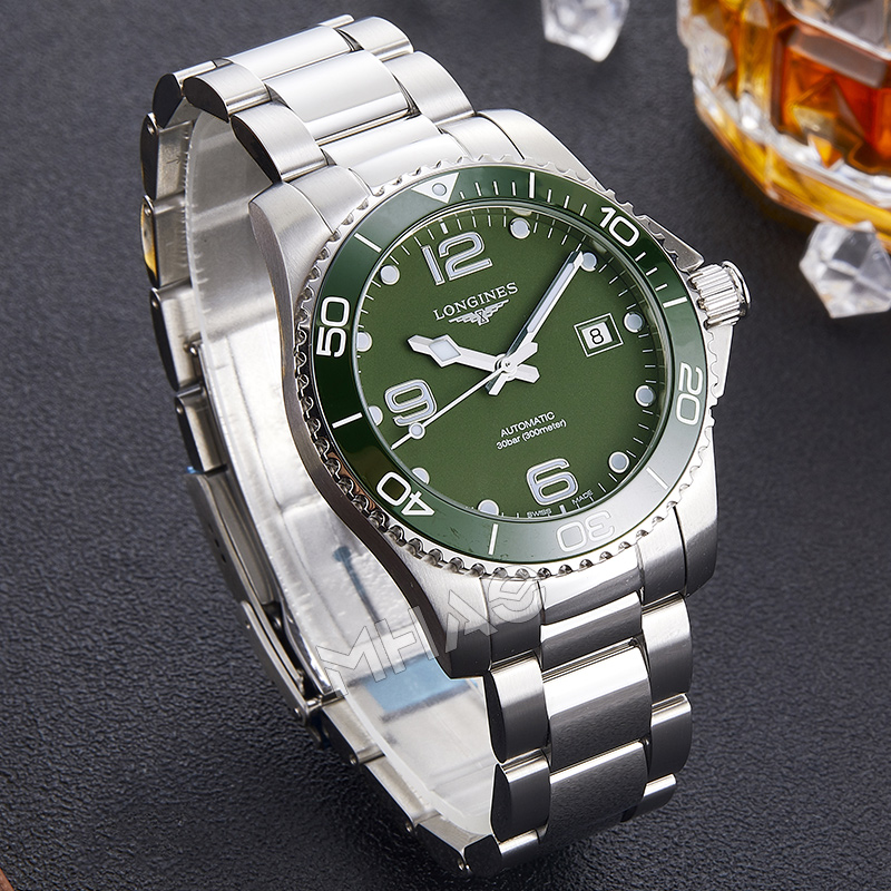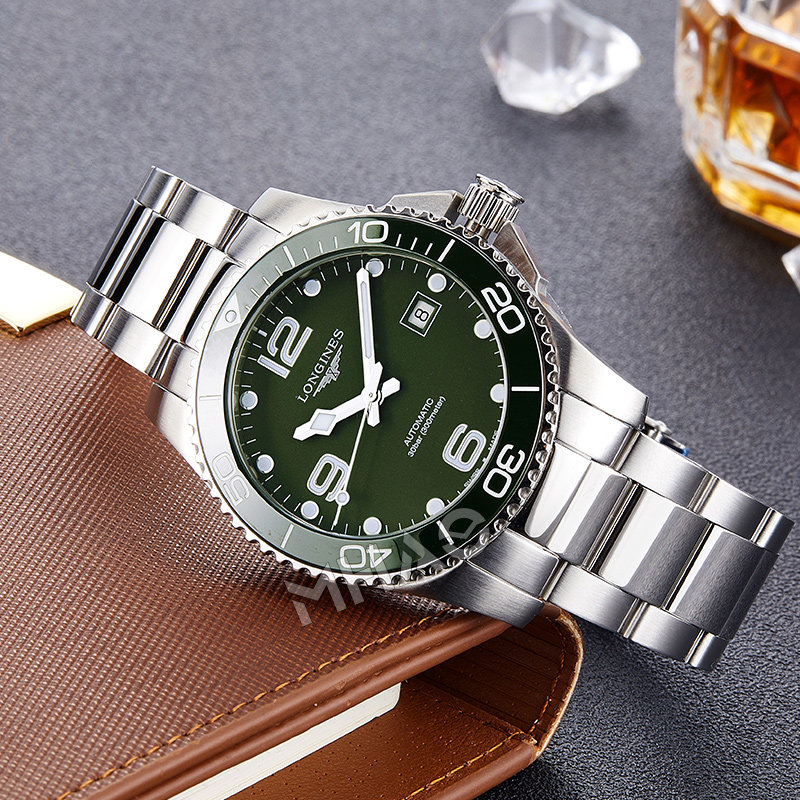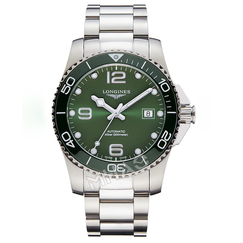正品 浪琴LONGINES康卡斯绿盘钢带陶瓷机械男表L3.781.4.06.6联保