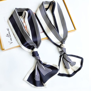小领巾细窄围巾 黑白条纹高级感秋冬季 长条丝巾搭配衬衫 女2025新款
